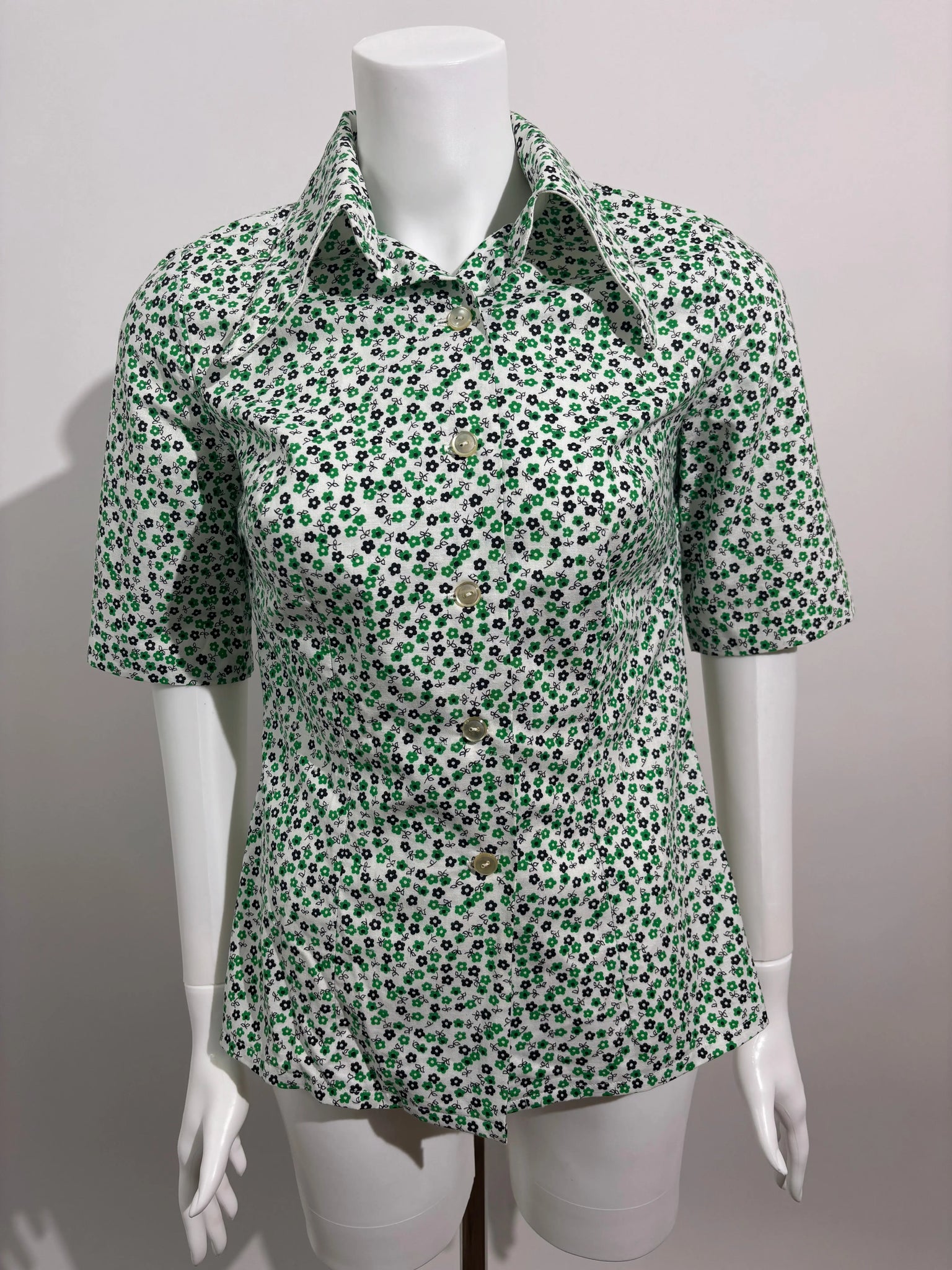 Osetite prolećnu svežinu sa ovom cvetnom košuljom iz 70-ih, ukrašenom šarenim cvetnim printom. Idealna za sveže i opuštene letnje dane.