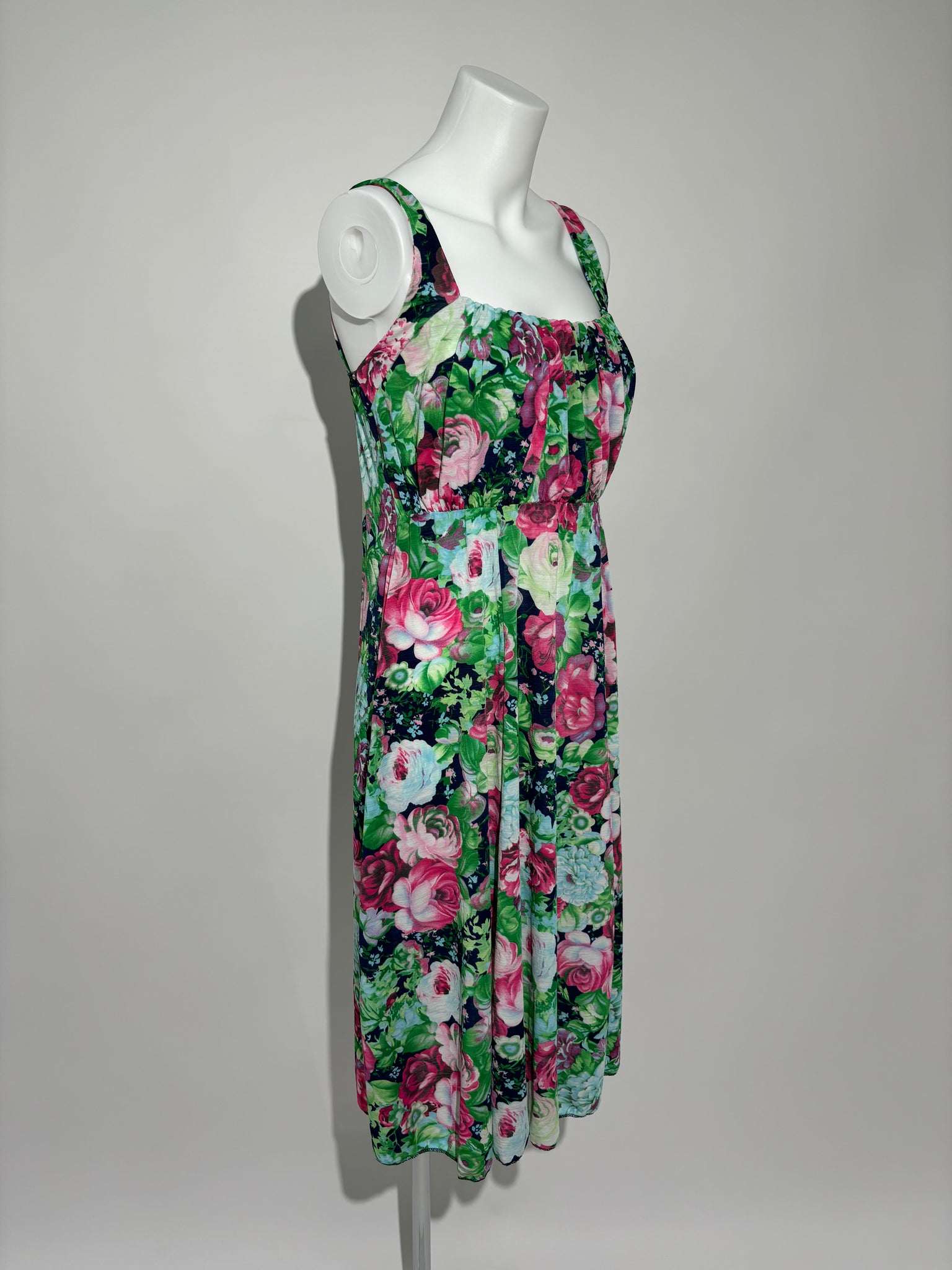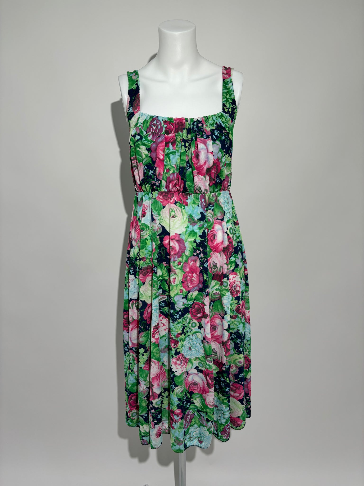 Dodajte dašak vintage cvetne lepote svojoj garderobi sa ovom prelepom Blooming Garden 90s Floral Haljinom. Savršena za prolećne šetnje i romantične večere, ova haljina će uneti šarm i eleganciju iz devedesetih u vaš stil.