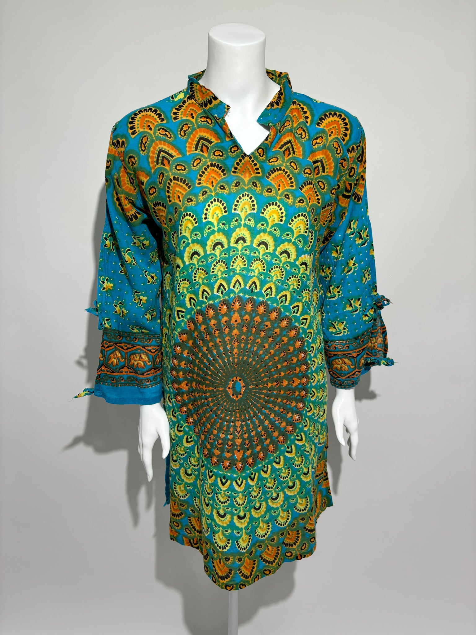 Dodajte dašak boemskog šarma svojoj garderobi sa ovom prelepom Bohemian Mandala 70s Tunic Haljinom. Savršena za letnje šetnje i opuštene izlaske, ova haljina će uneti vintage šarm iz sedamdesetih u vaš stil.