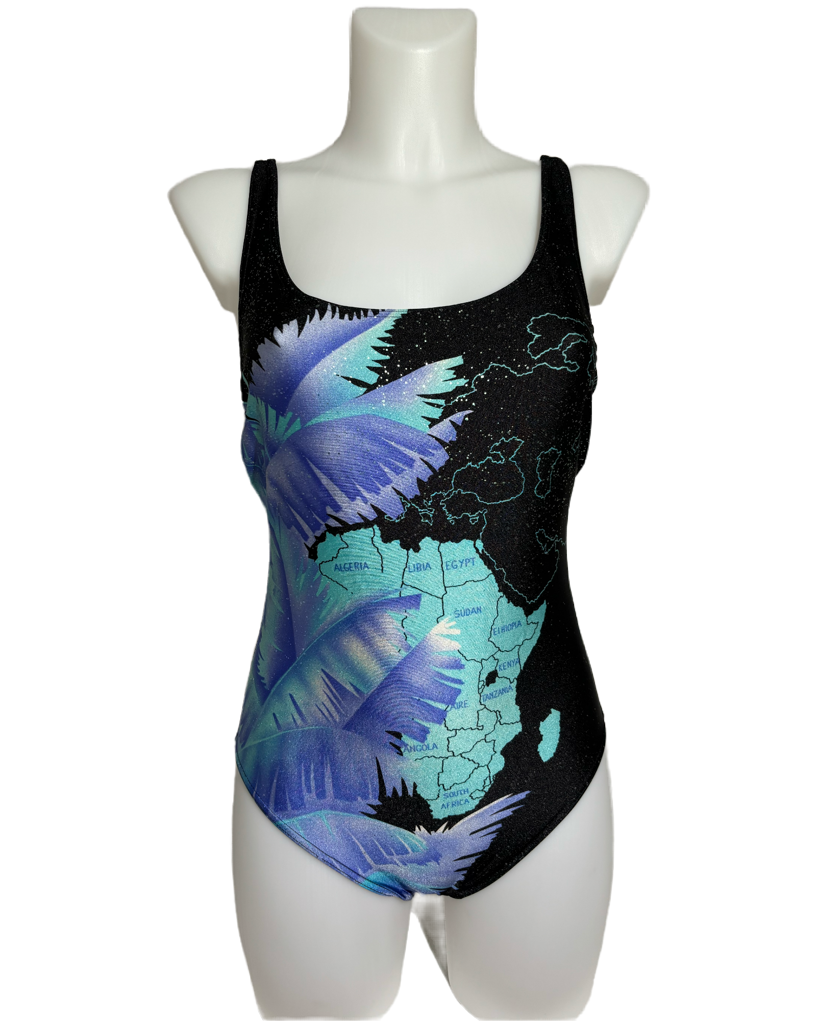 Dodajte jedinstven dodir svojoj letnjoj garderobi sa Cosmic Africa Map 80s jednodelnim kupaćim kostimom. Inspirisan afričkim motivima, ovaj kupaći kostim donosi vibrantne boje i unikatni dizajn, savršen za nezaboravne plažne dane.