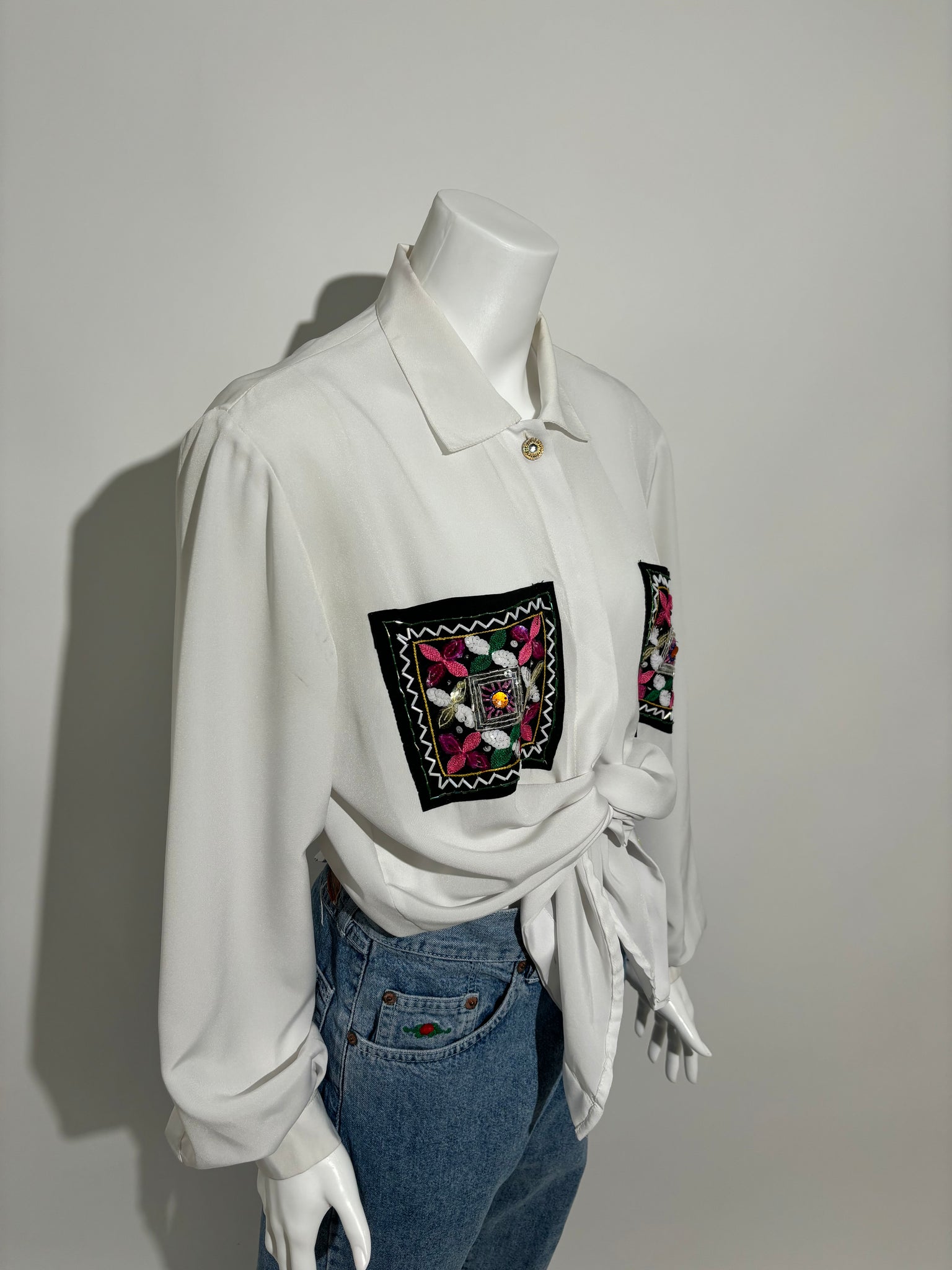 Ova casual bluza sa vezom iz 90-ih donosi elegantan i ležeran izgled. Savršena je za svakodnevne prilike i casual izlaske.