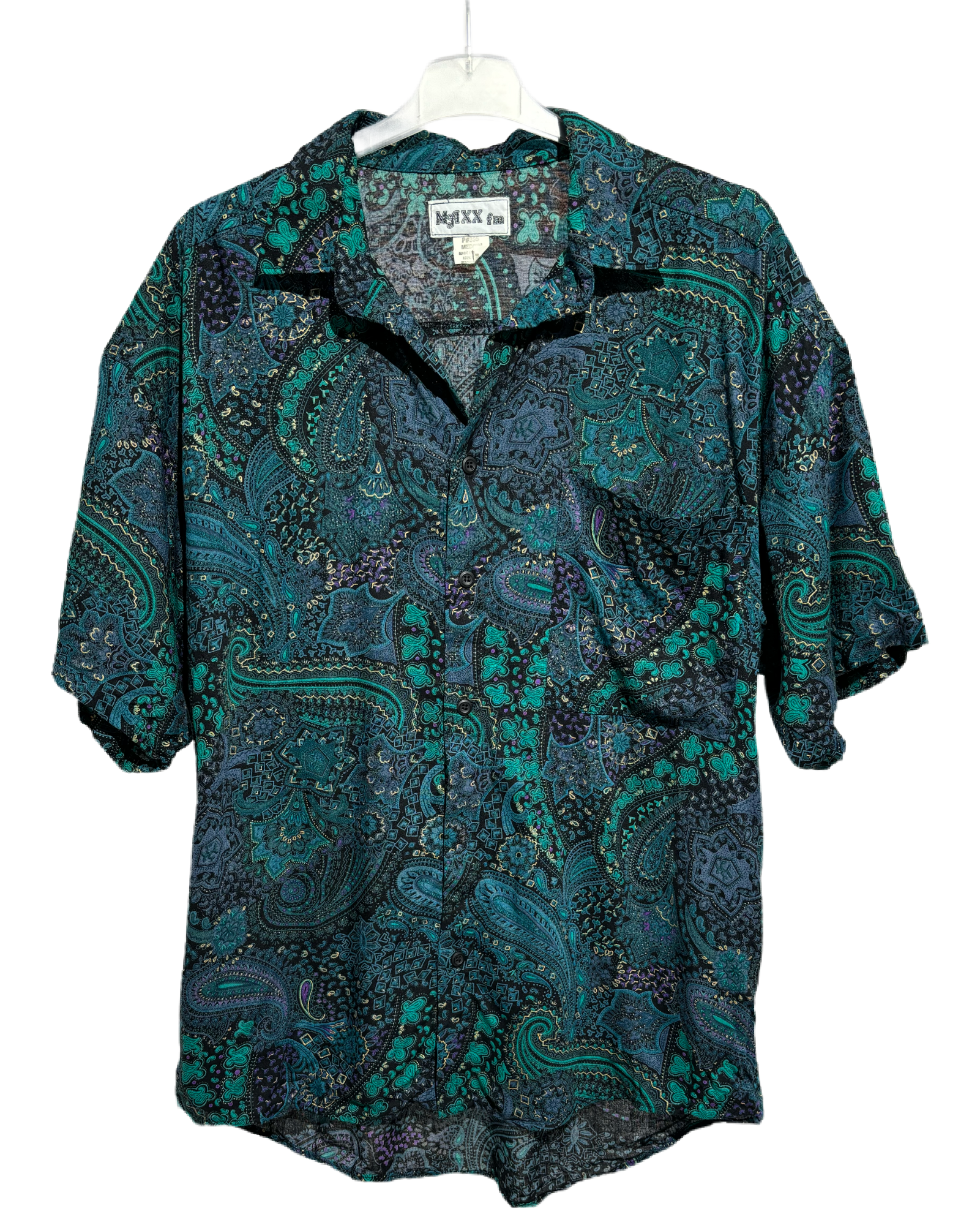 Dodajte dozu boho elegancije svom stilu uz Emerald Tapestry 90s Boho košulju iz naše kolekcije. Ova košulja je savršen izbor za ljubitelje vintage estetike i boho stila, izrađena od laganog 100% rajona za udobnost i stil.