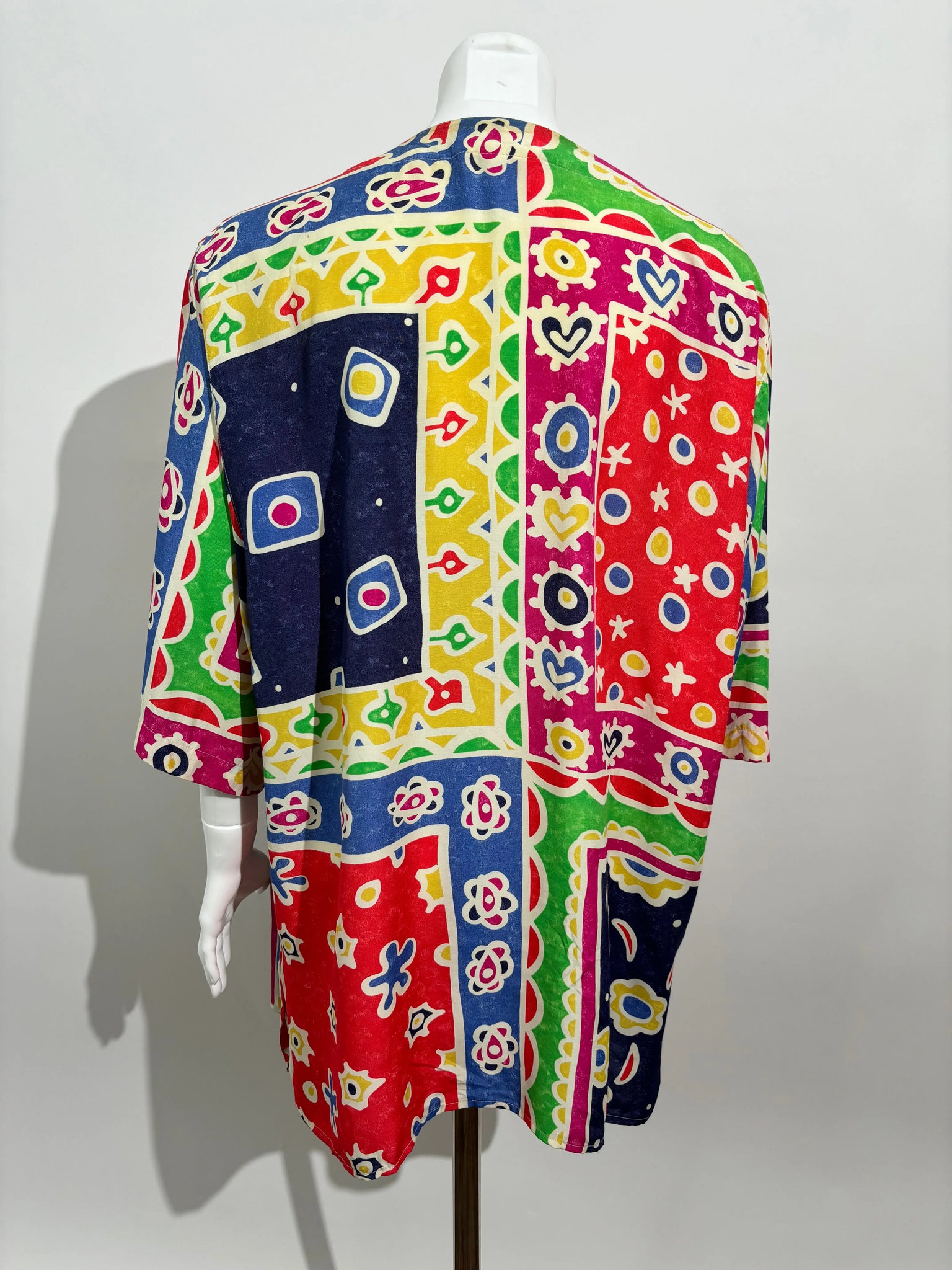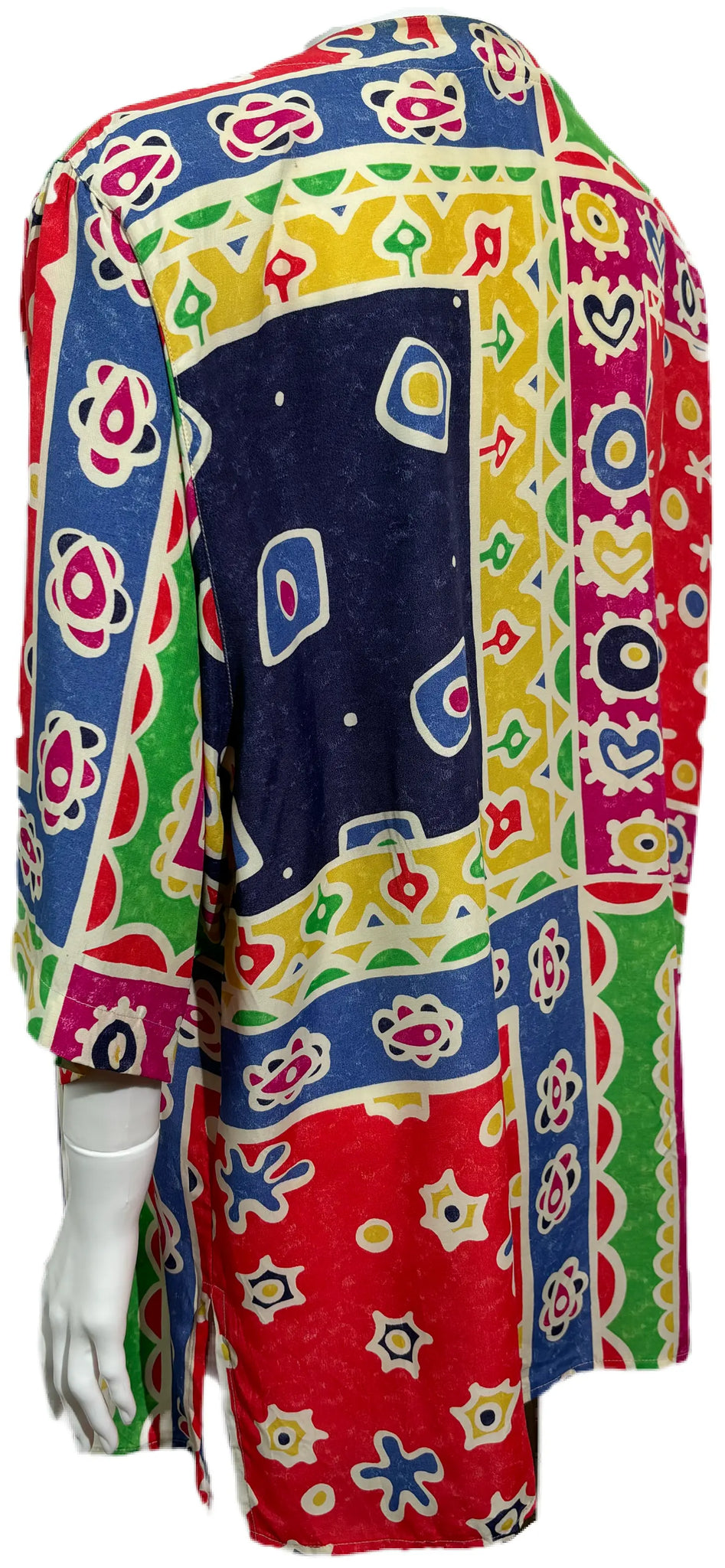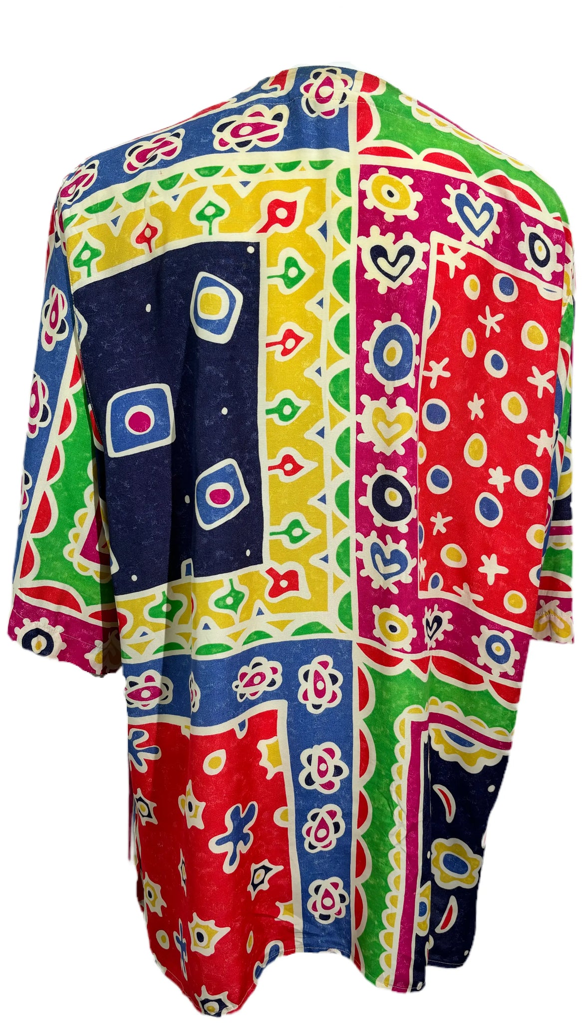 Unesite boje i veselje u svoj garderober sa ovom košuljom iz 90-ih sa apstraktnim uzorkom. Idealna za festivale i neformalne letnje dane.