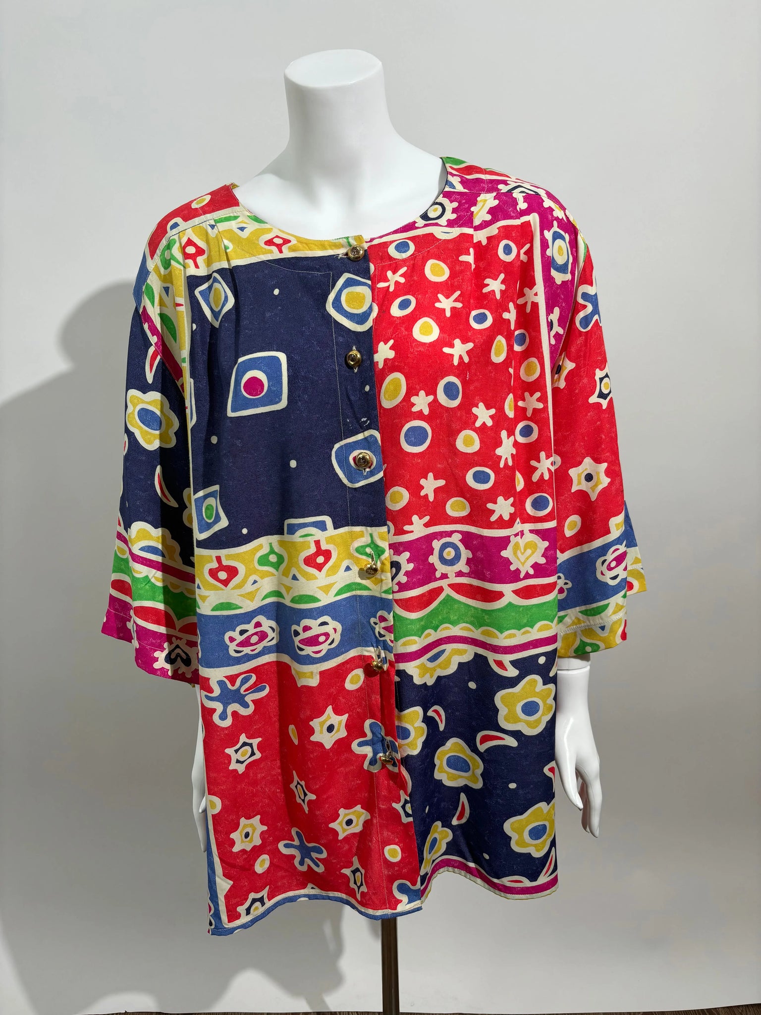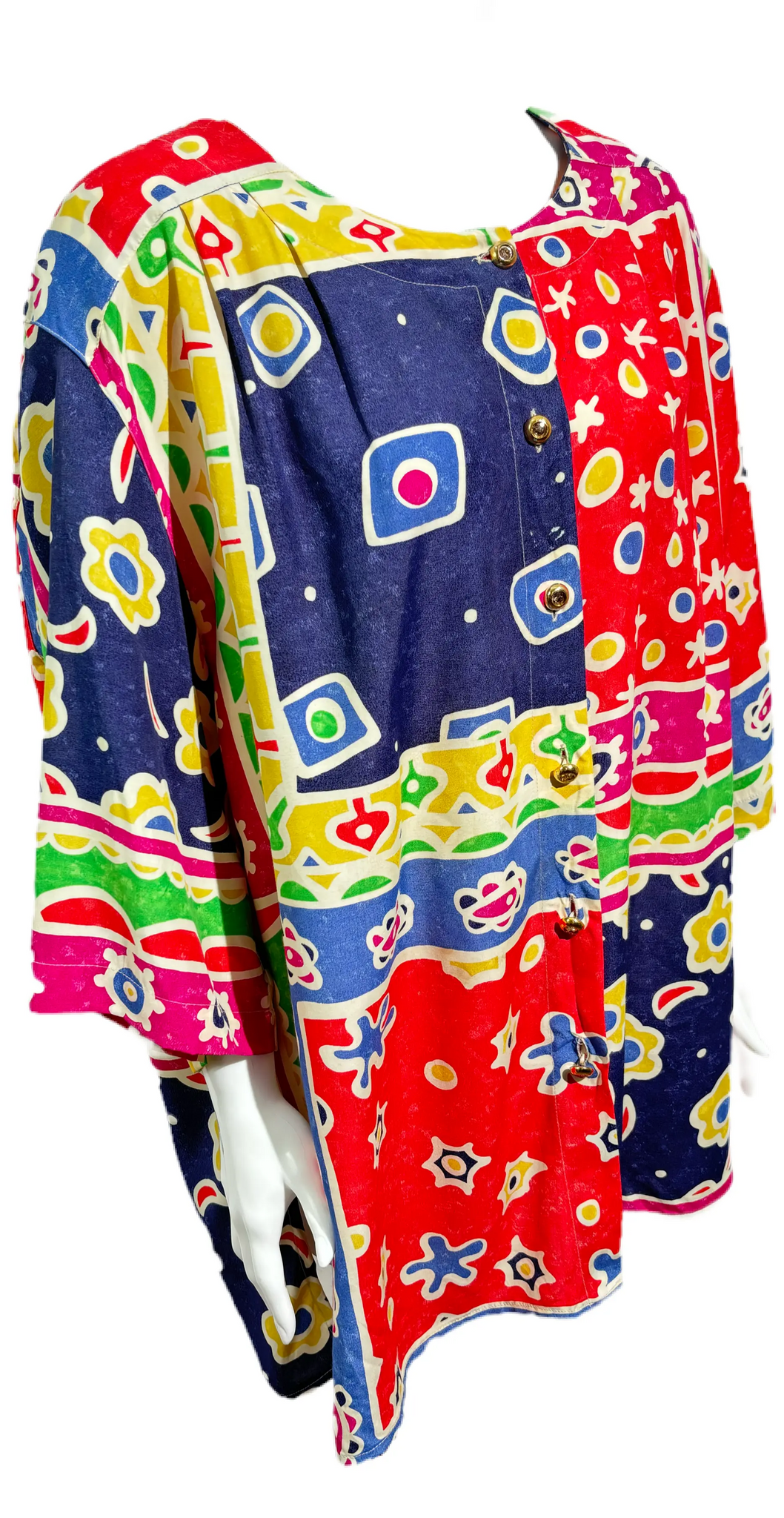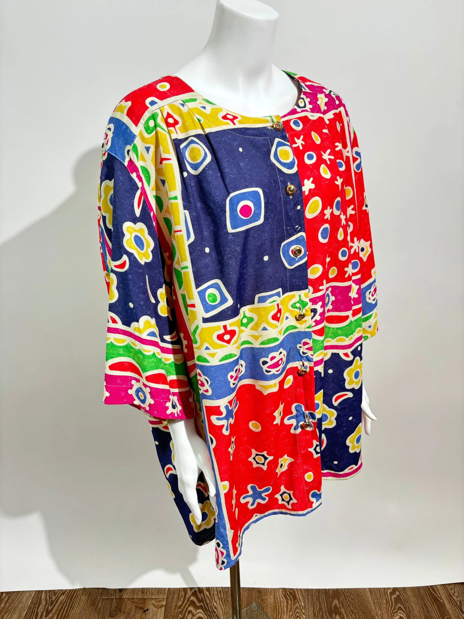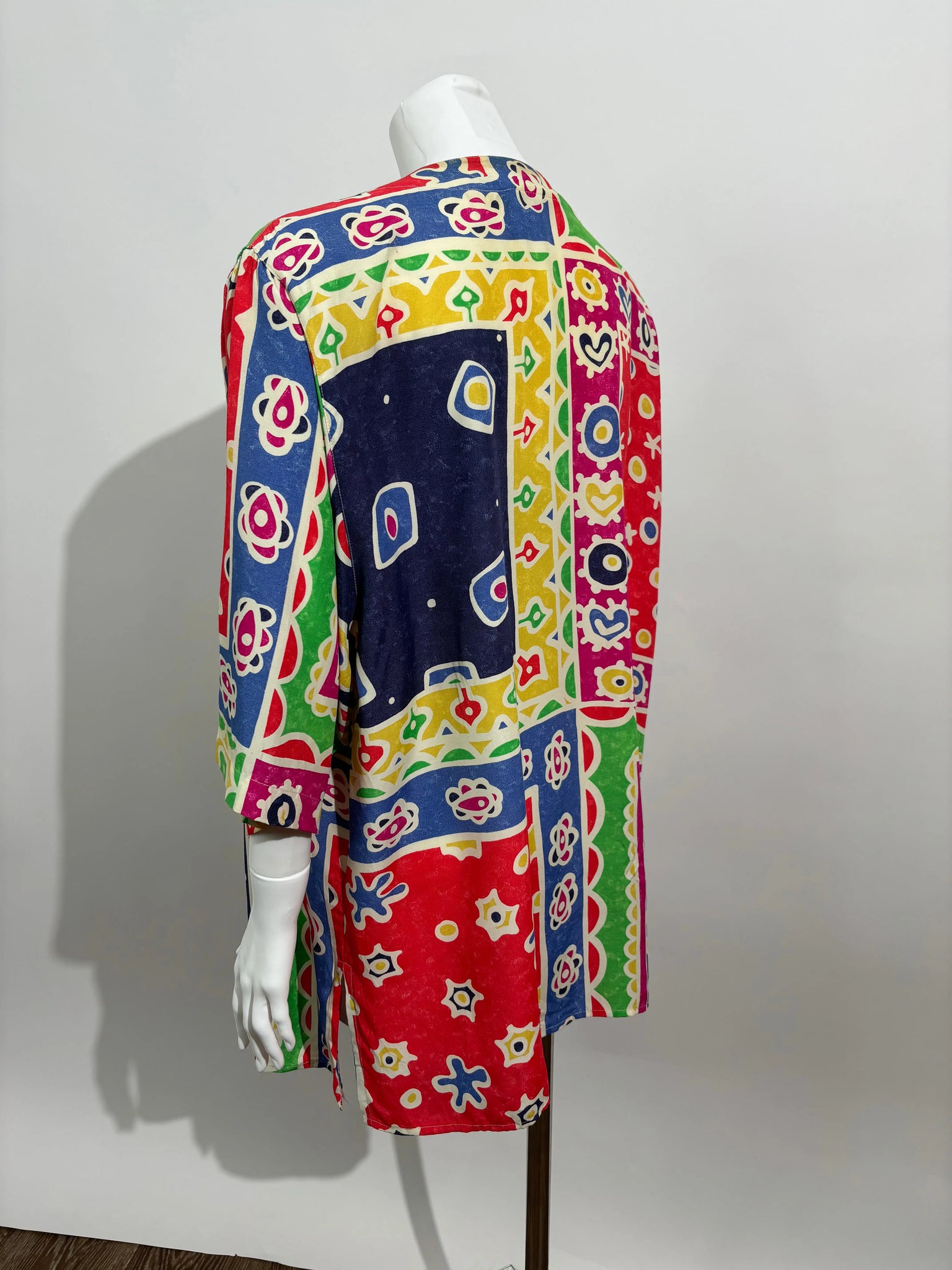 Unesite boje i veselje u svoj garderober sa ovom košuljom iz 90-ih sa apstraktnim uzorkom. Idealna za festivale i neformalne letnje dane.
