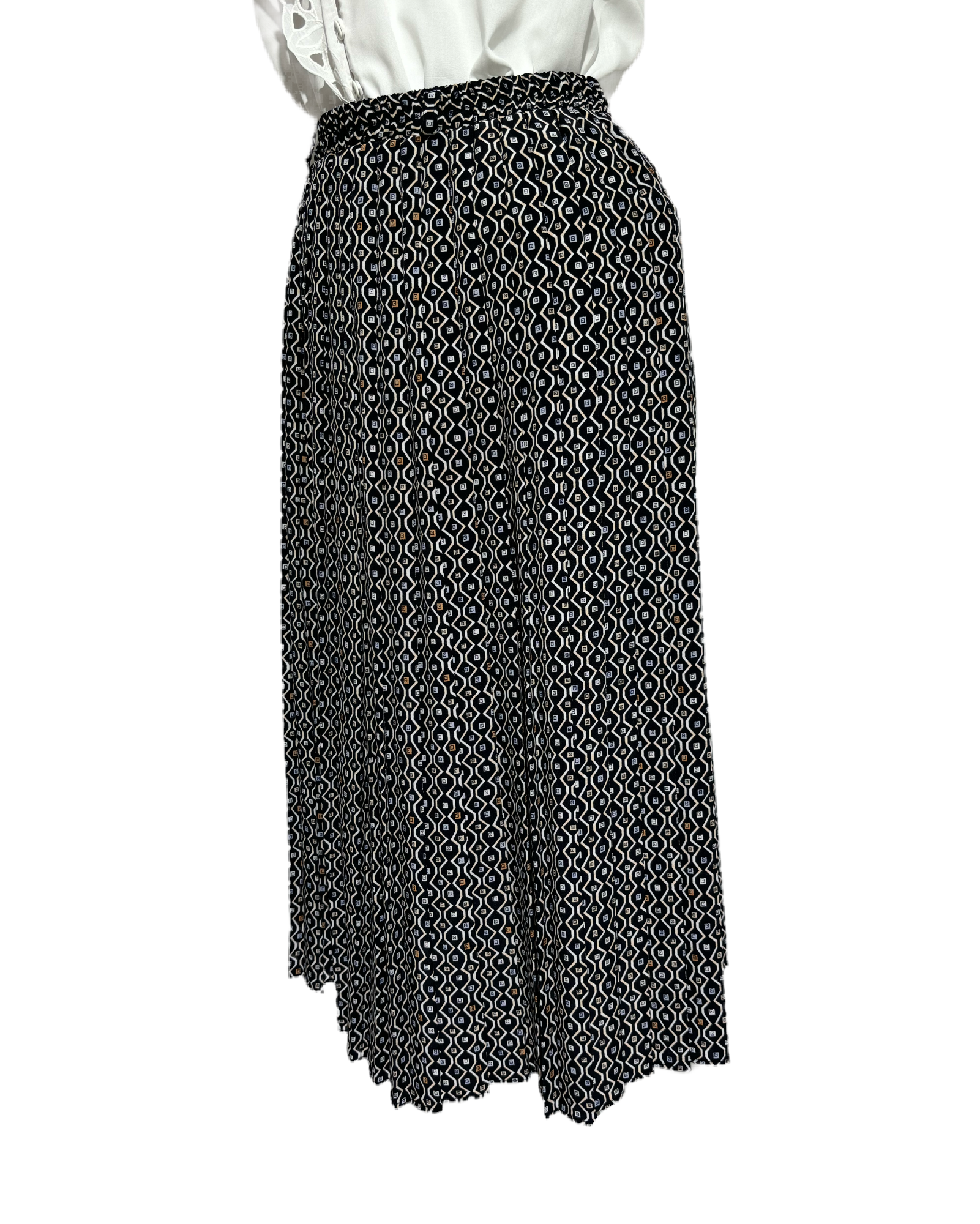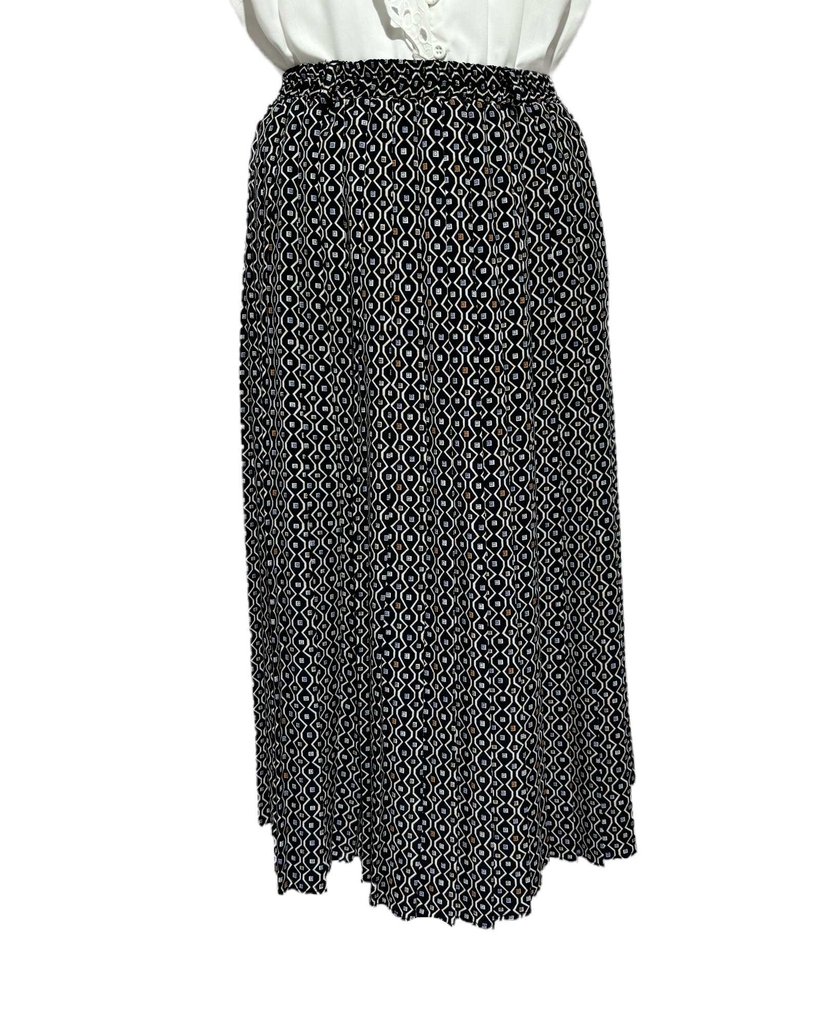 Dodajte dašak stila svojoj garderobi sa ovom prelepom Geometric Harmony 90s Pattern suknjom. Savršena za svaku priliku, ova suknja će uneti retro šarm iz 90-ih u vaš stil.