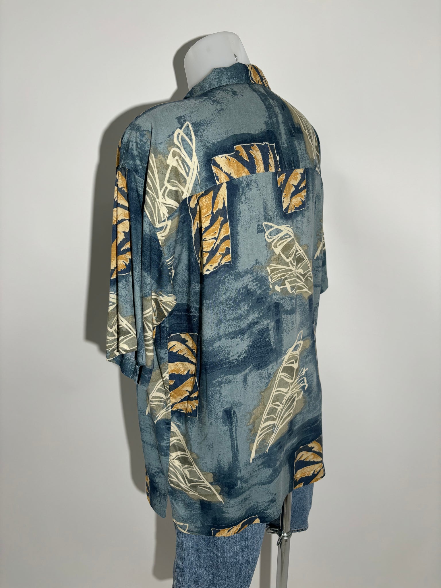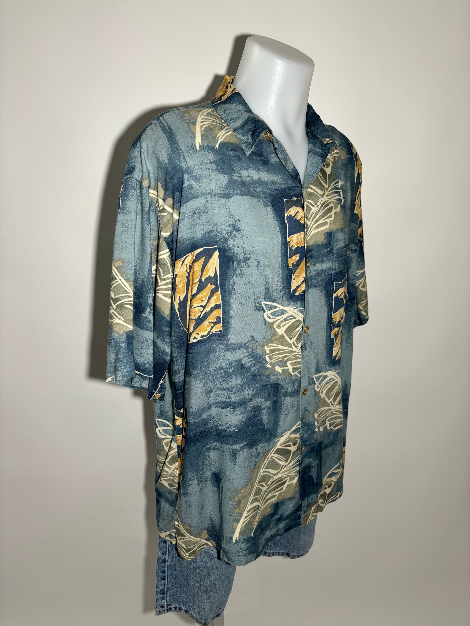 Dodajte dašak retro elegancije svojoj garderobi sa ovom prelepom Golden Leaf 90s Hawaiian Košuljom. Savršena za letnje događaje, plažne zabave i opuštajuće vikende, ova košulja će uneti vintage šarm u vaš stil.