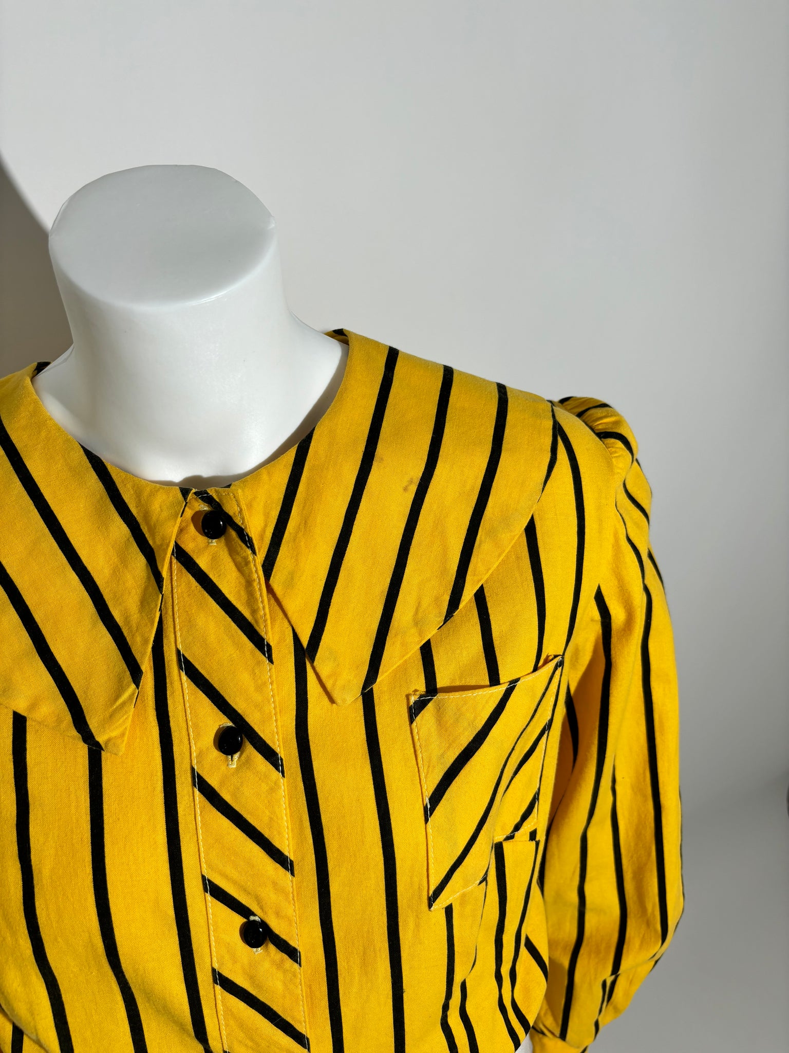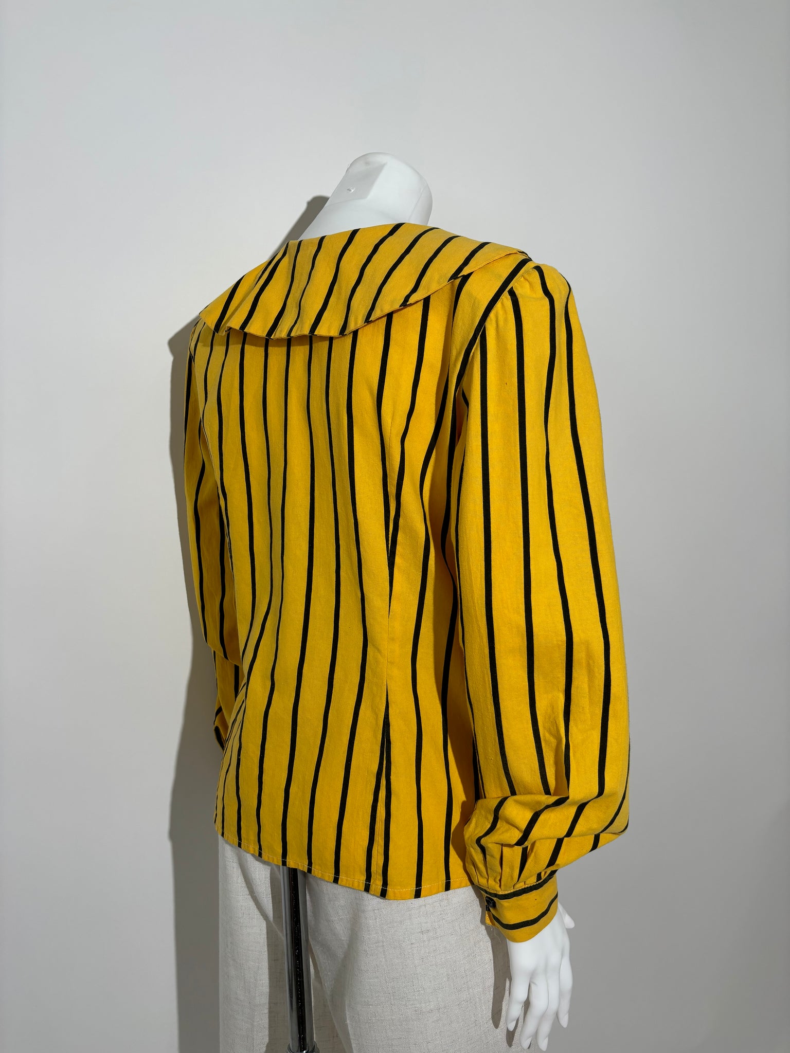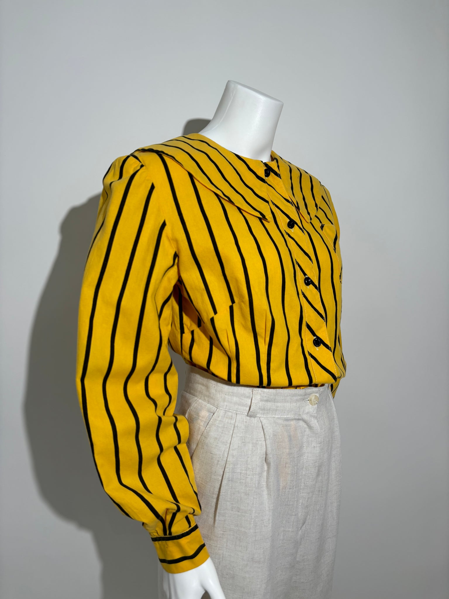 Ova košulja sa zlatnim prugama iz 80-ih donosi elegantan i sofisticiran izgled. Savršena je za poslovne prilike i formalne događaje.