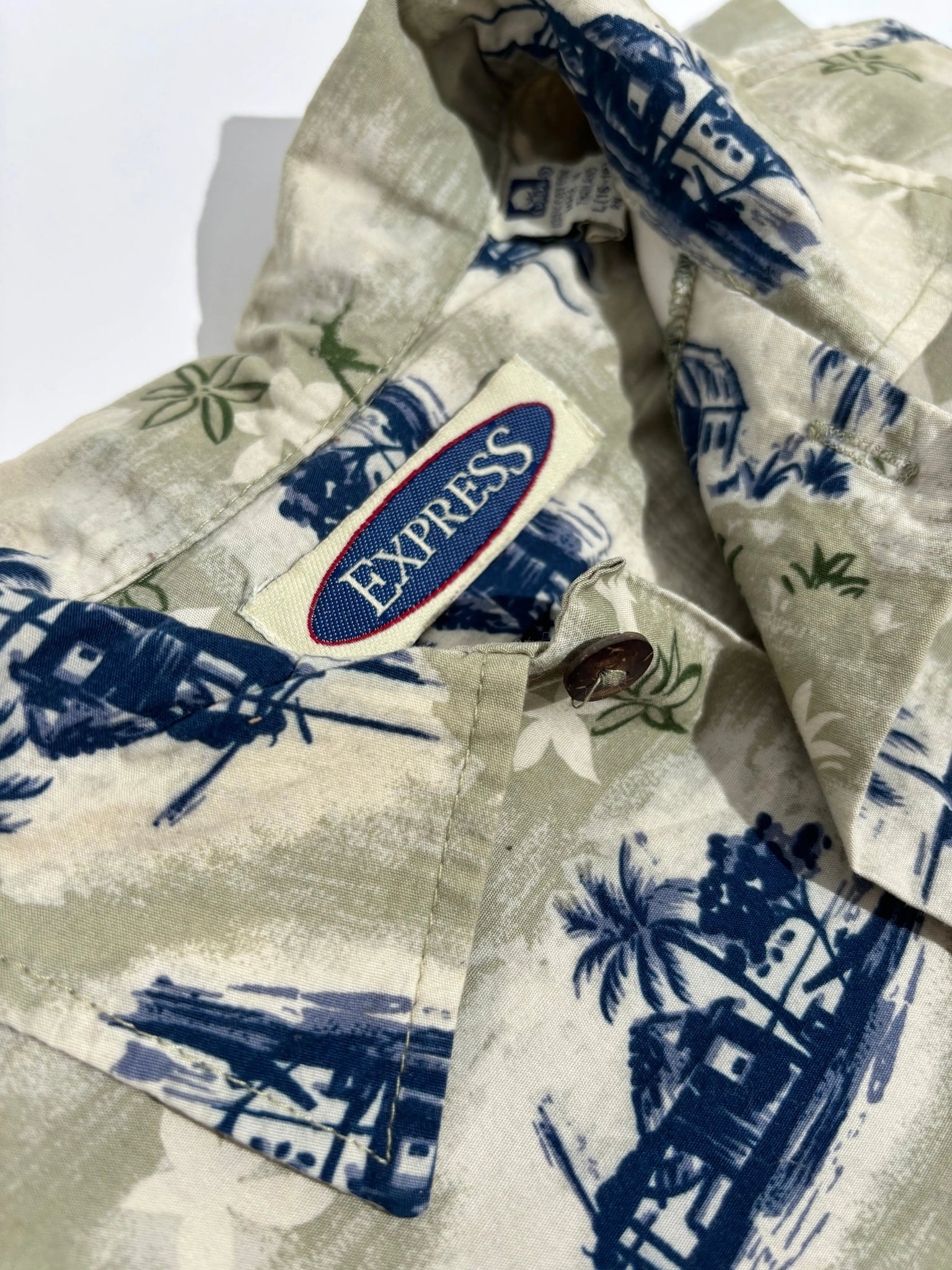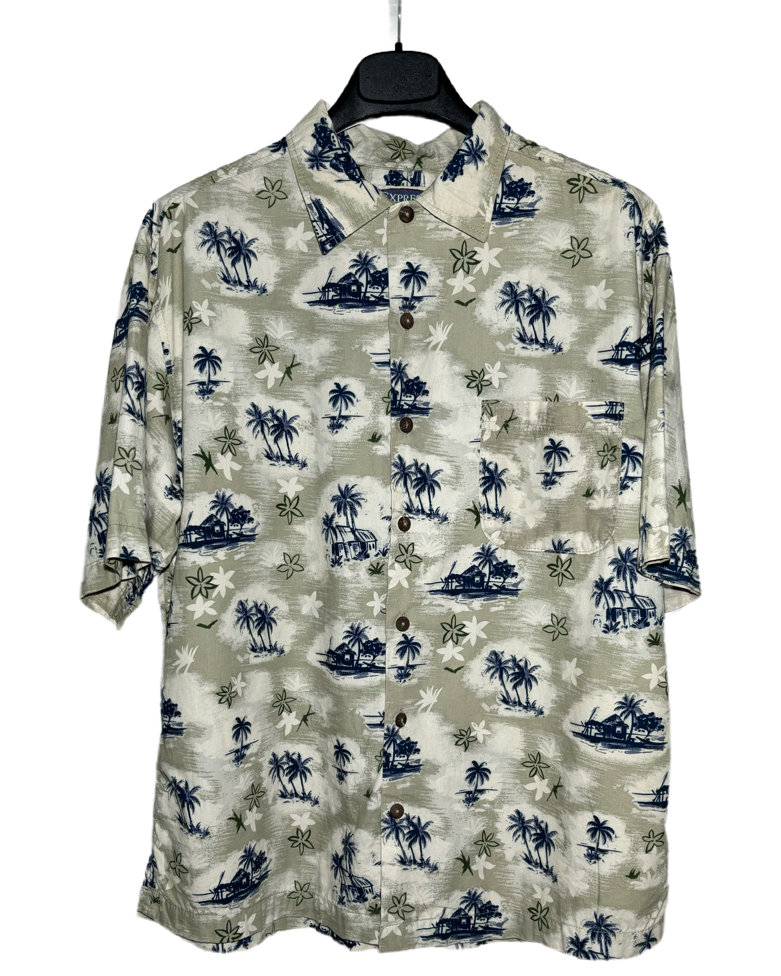 Dodajte dašak tropske egzotike svojoj garderobi sa ovom prelepom Island Getaway 80s Hawaiian košuljom. Savršena za opuštanje na plaži ili letnje zabave, ova košulja će uneti vintage šarm u vaš stil.