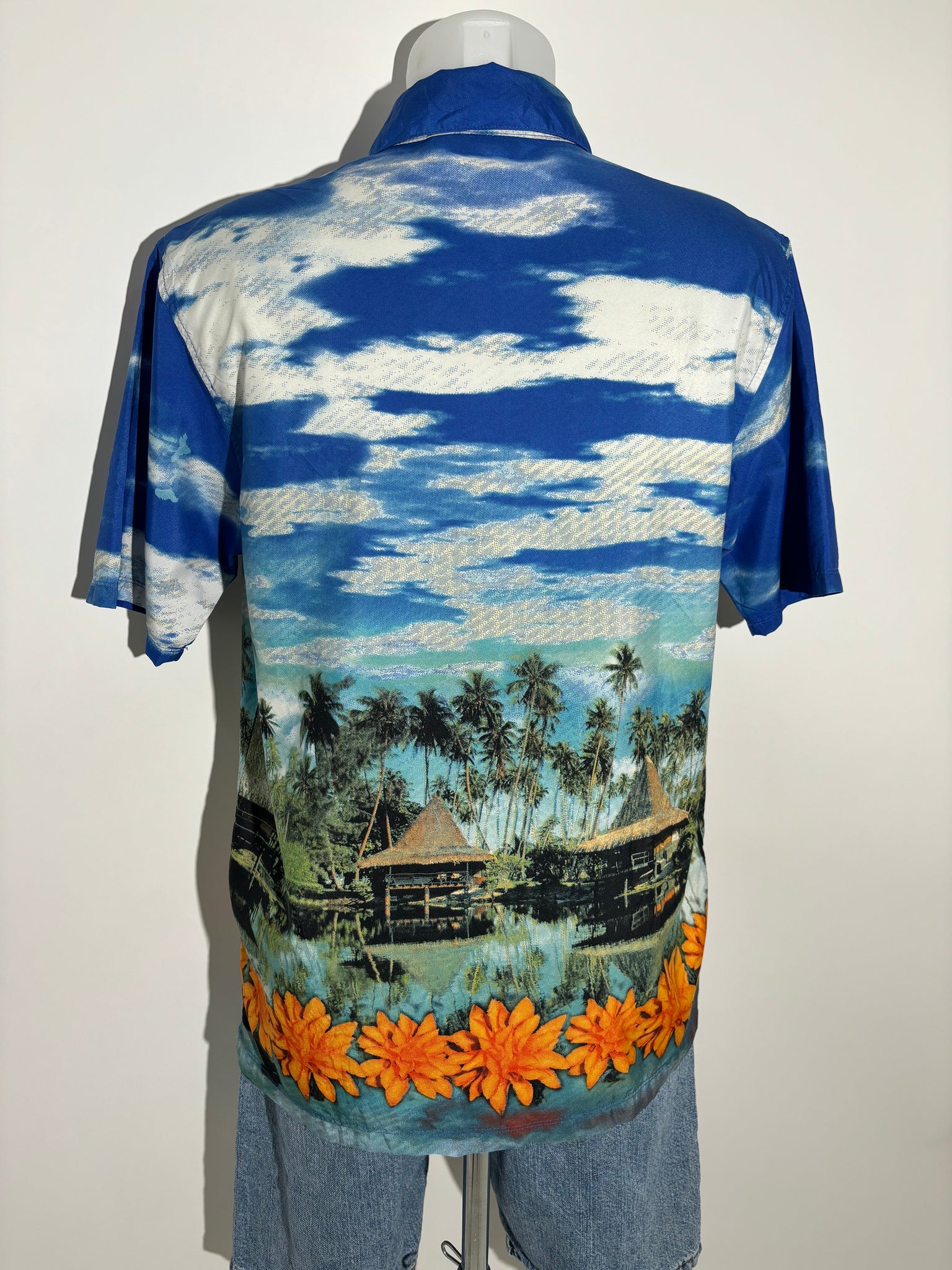 Dodajte dašak tropskog šarma svojoj garderobi sa ovom prelepom Hawaiian košuljom iz devedesetih. Savršena za opuštene trenutke na plaži ili ležerne izlaske, ova košulja će uneti vintage šarm u vaš stil.