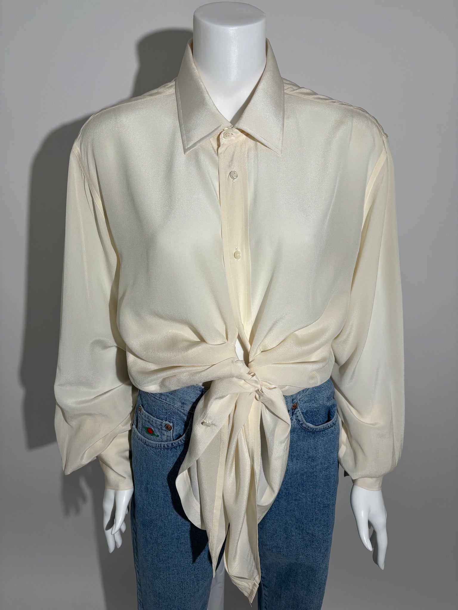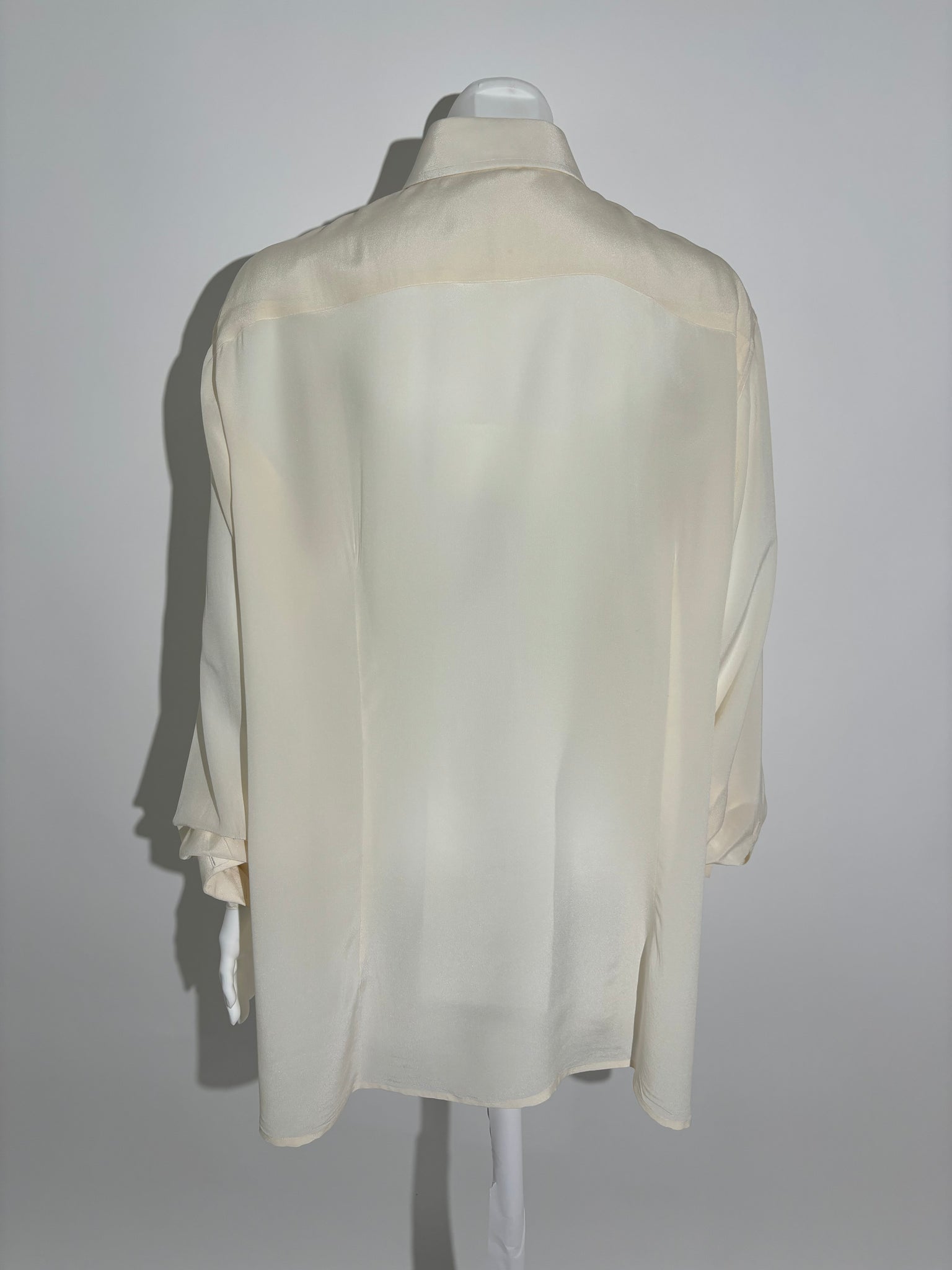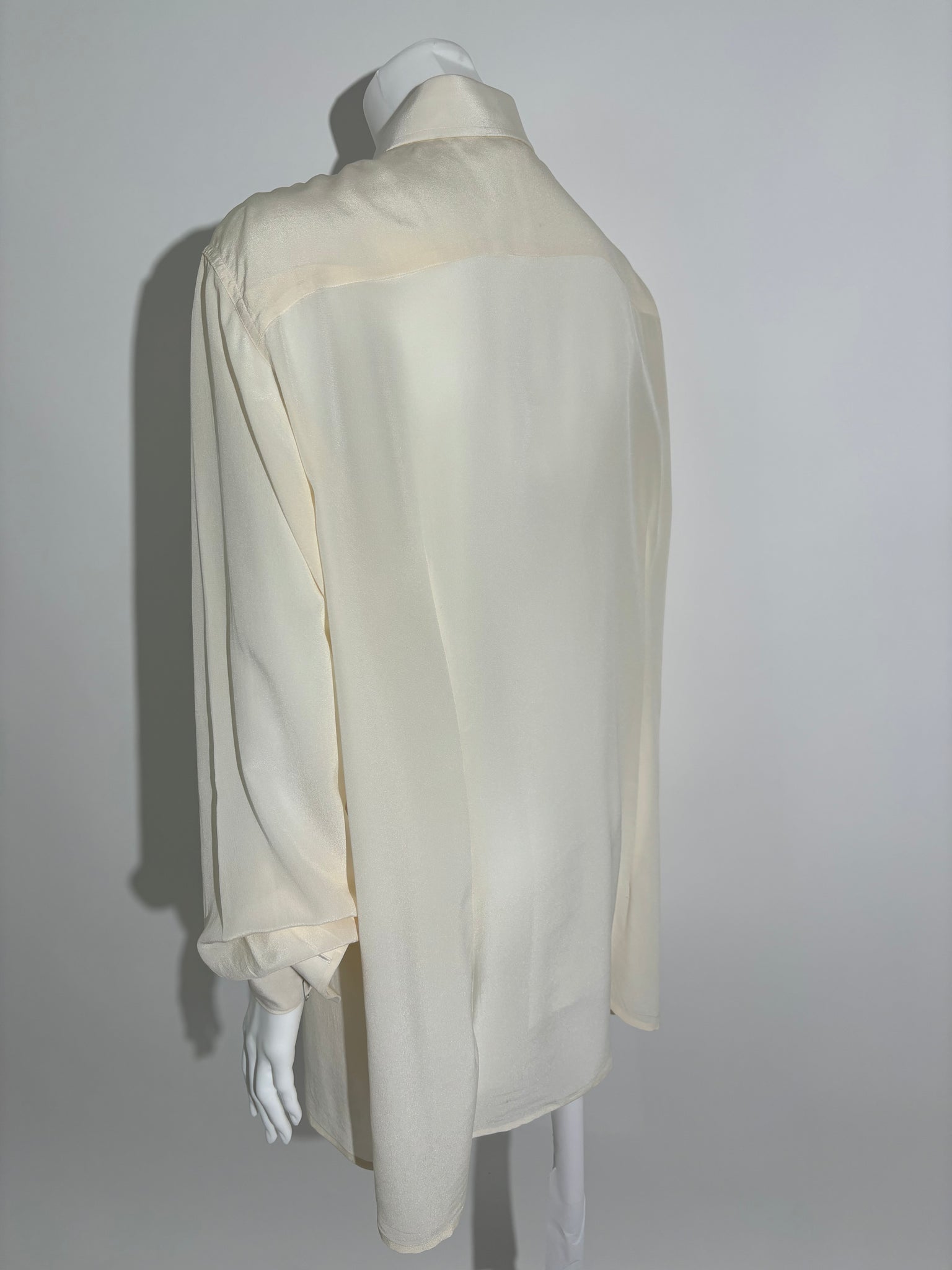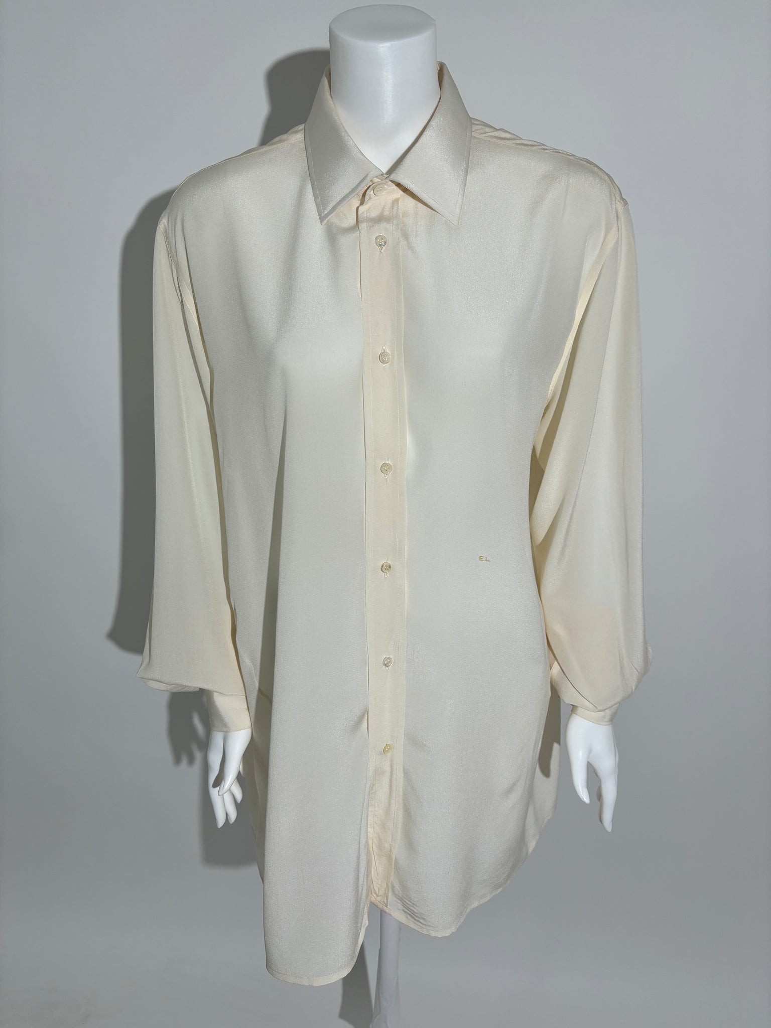 Ova klasična košulja u boji slonovače iz 80-ih donosi sofisticiran i elegantan izgled. Savršena je za formalne događaje i poslovne prilike.