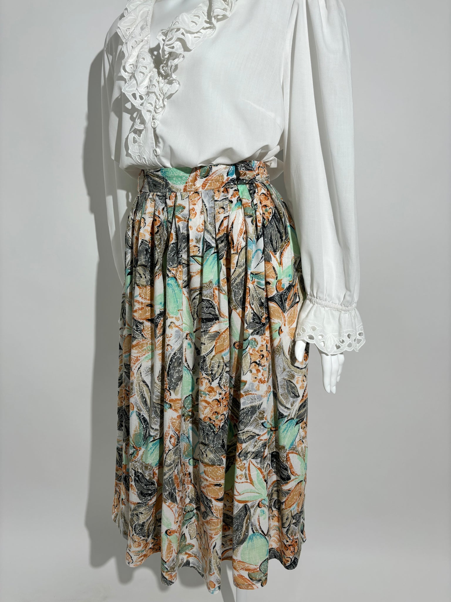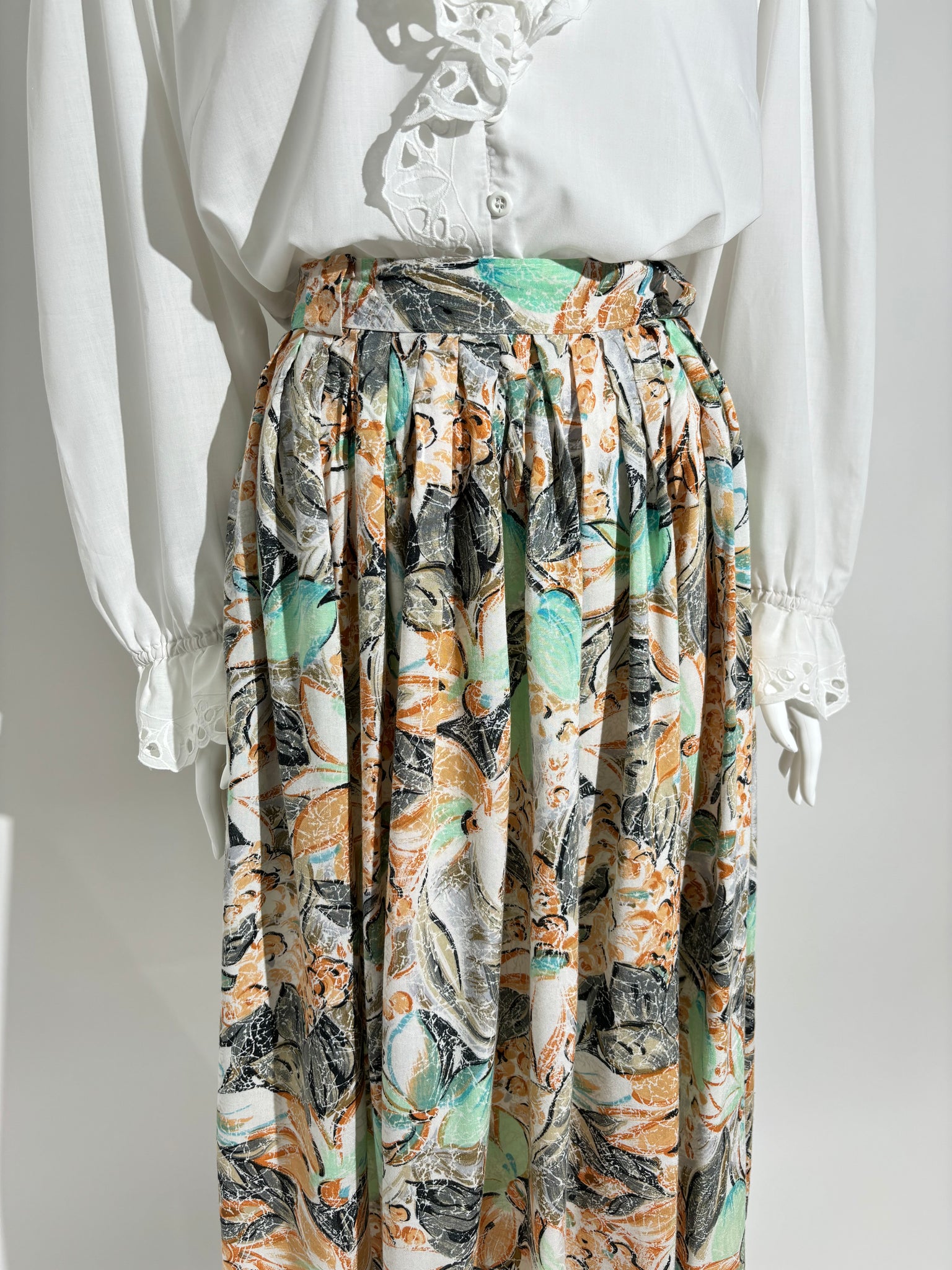 Ova suknja sa listastim uzorkom iz 70-ih donosi prirodan i elegantan izgled. Savršena za prolećne i letnje dane, kao i za casual izlaske.