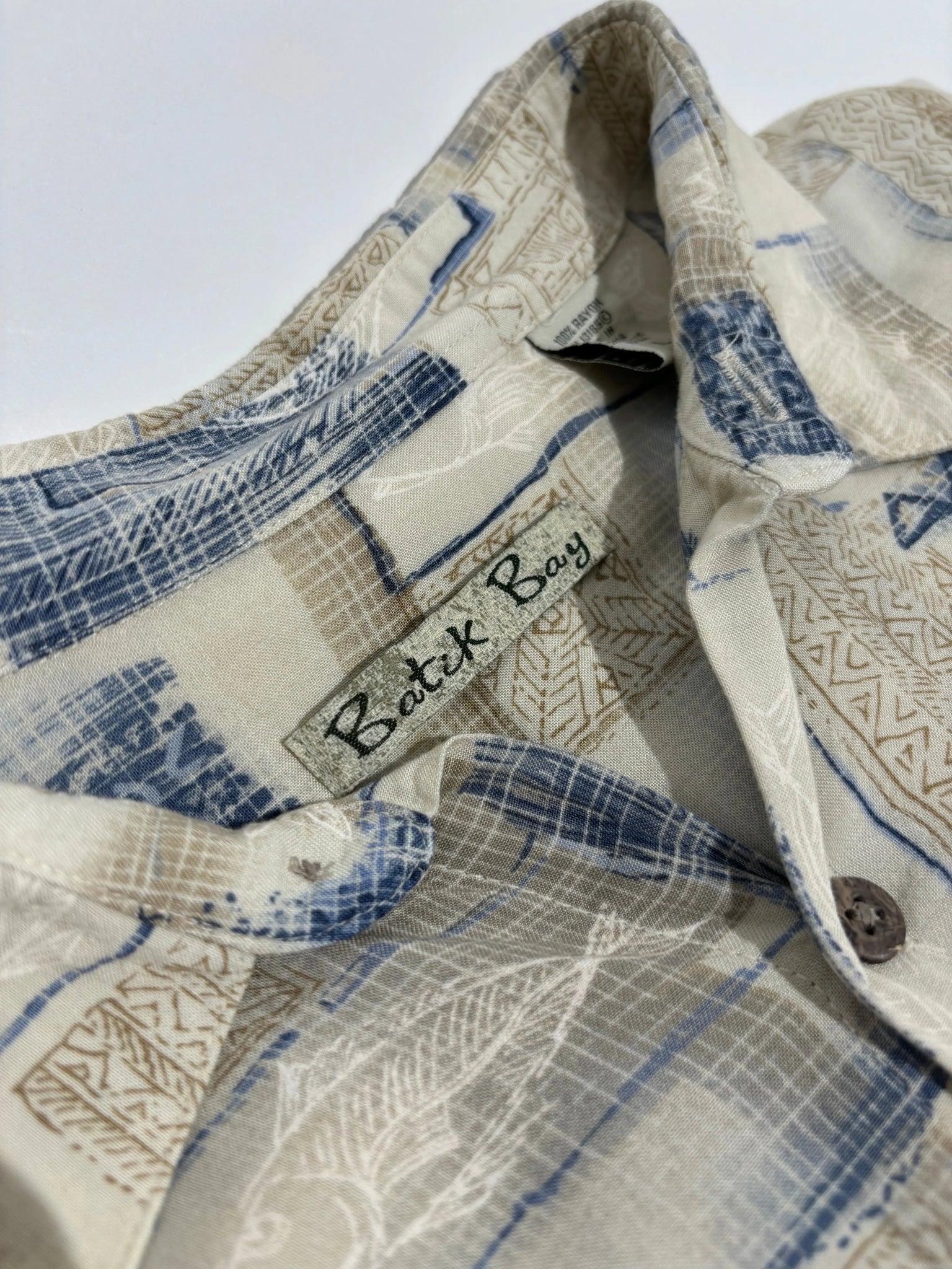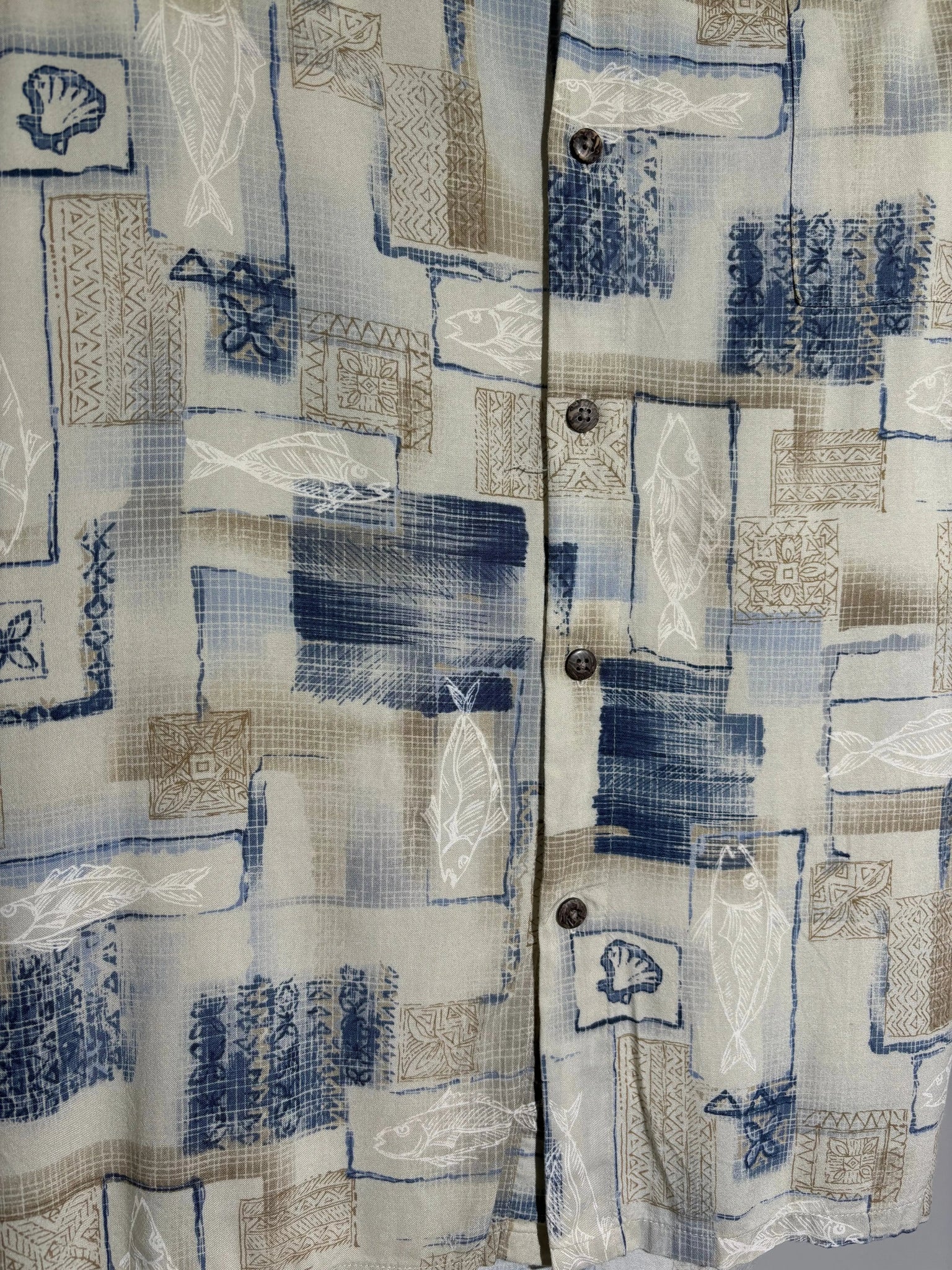 Osvežite svoju garderobu sa Marine Shores havajskom košuljom iz 90-ih. Ova košulja, izrađena od 100% rayona, donosi lagani osećaj tropskog vetra i mora, sa vibrantnim dizajnom inspirisanim morskim obalama.