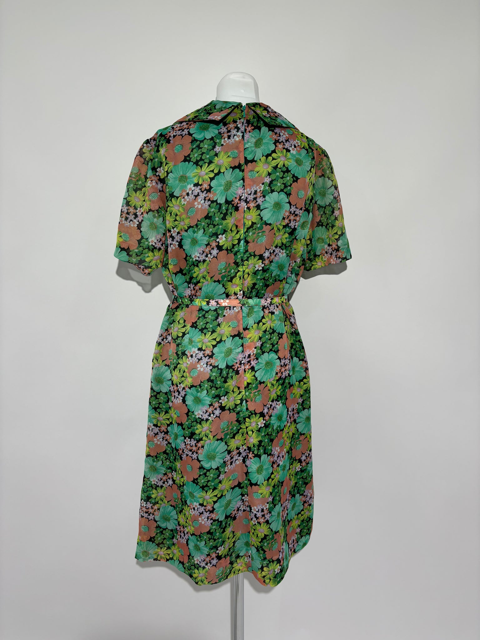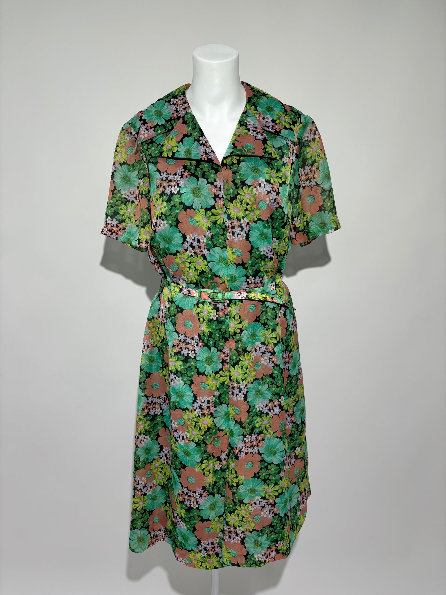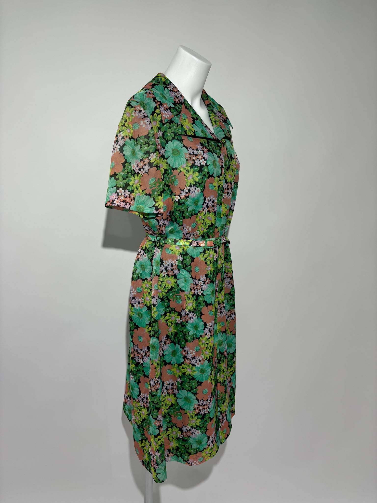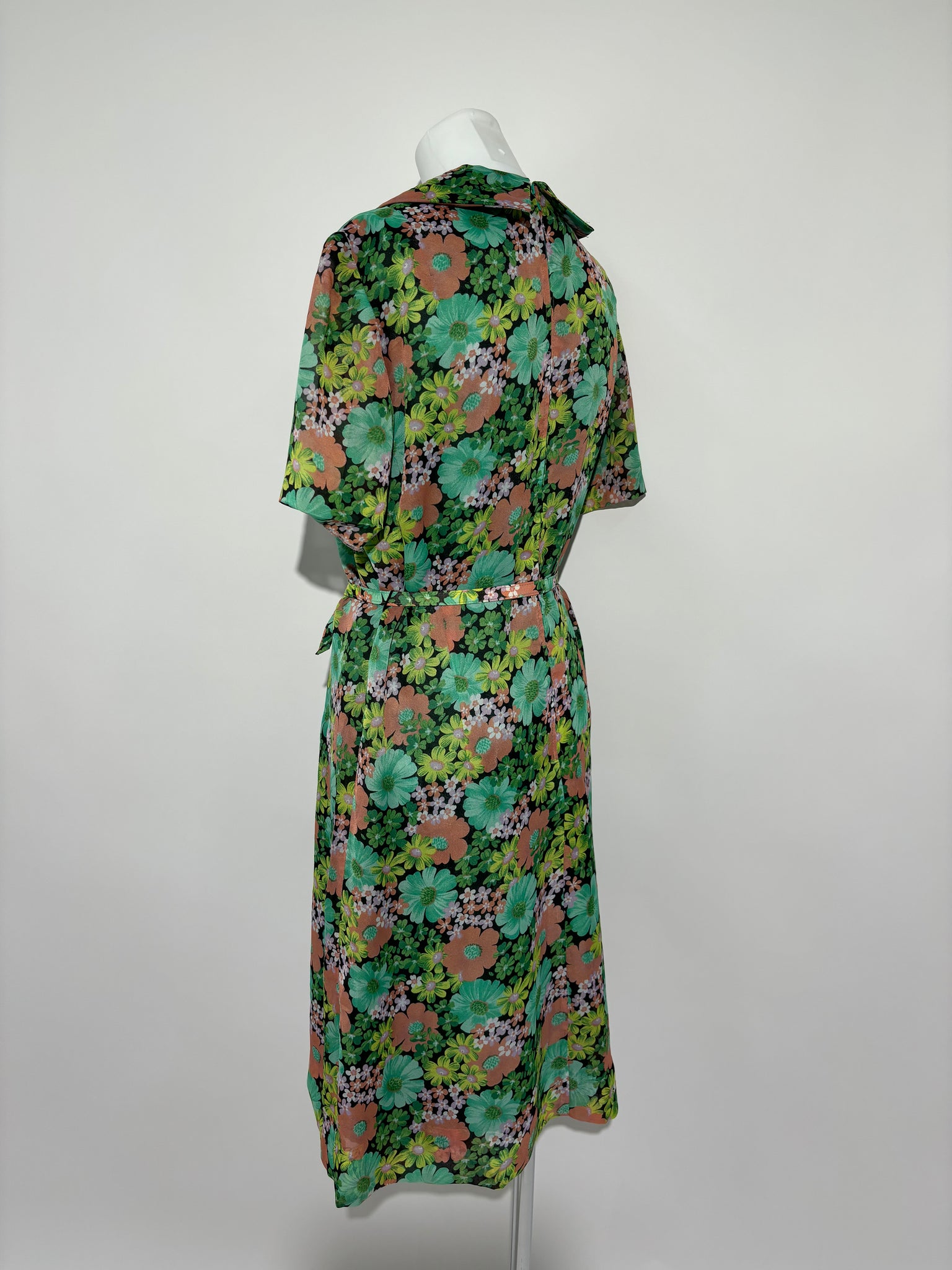 Dodajte dašak vintage šarma svojoj garderobi sa ovom prelepom cvetnom haljinom iz 70-ih. Savršena za svečane prilike i romantične večeri, ova haljina će vam pružiti eleganciju i stil.