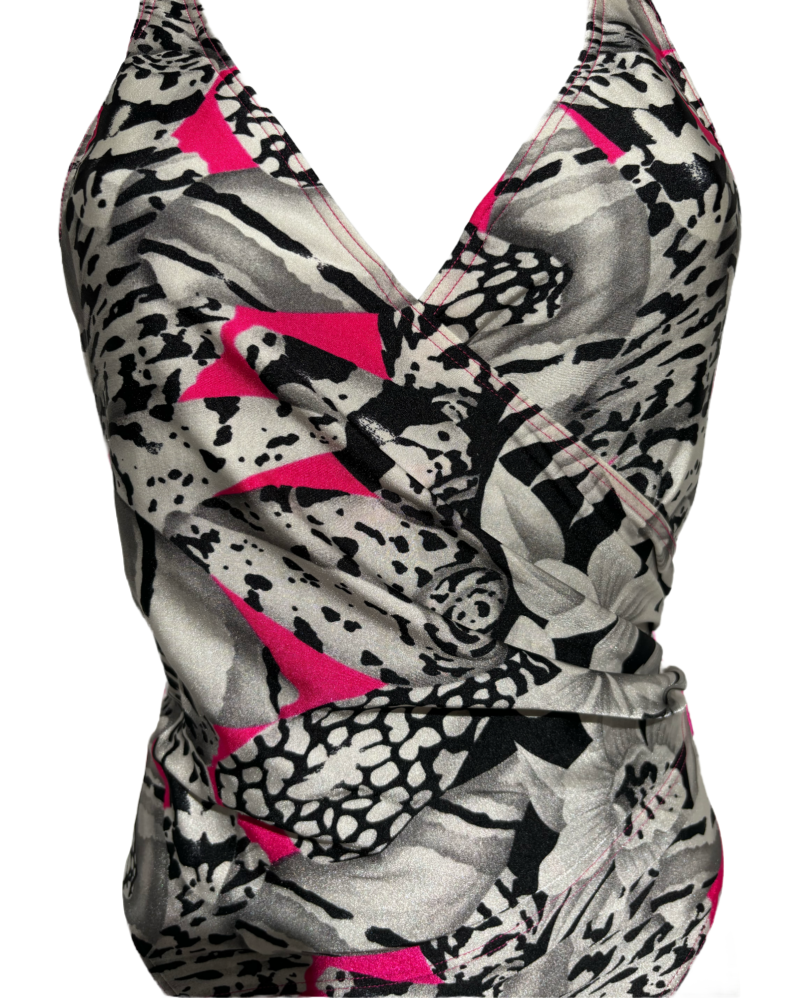 Dodajte sofisticiranost i umetnički stil vašem letnjem ormaru sa Monochrome Passion jednodelnim kupaćim kostimom iz 90-ih. Ovaj apstraktni dizajn u monohromatskim tonovima stvara moderan i elegantan izgled, savršen za sve vaše letnje avanture. Napravljen od visokokvalitetne mešavine najlona i spandeksa, pruža optimalnu udobnost i fleksibilnost.