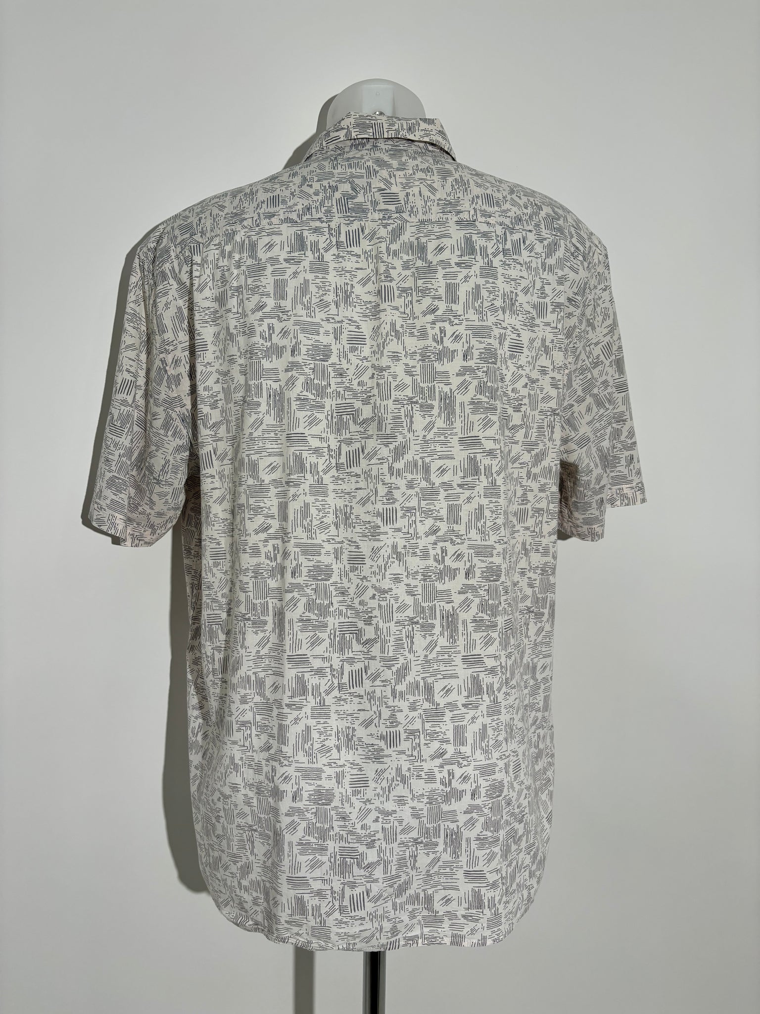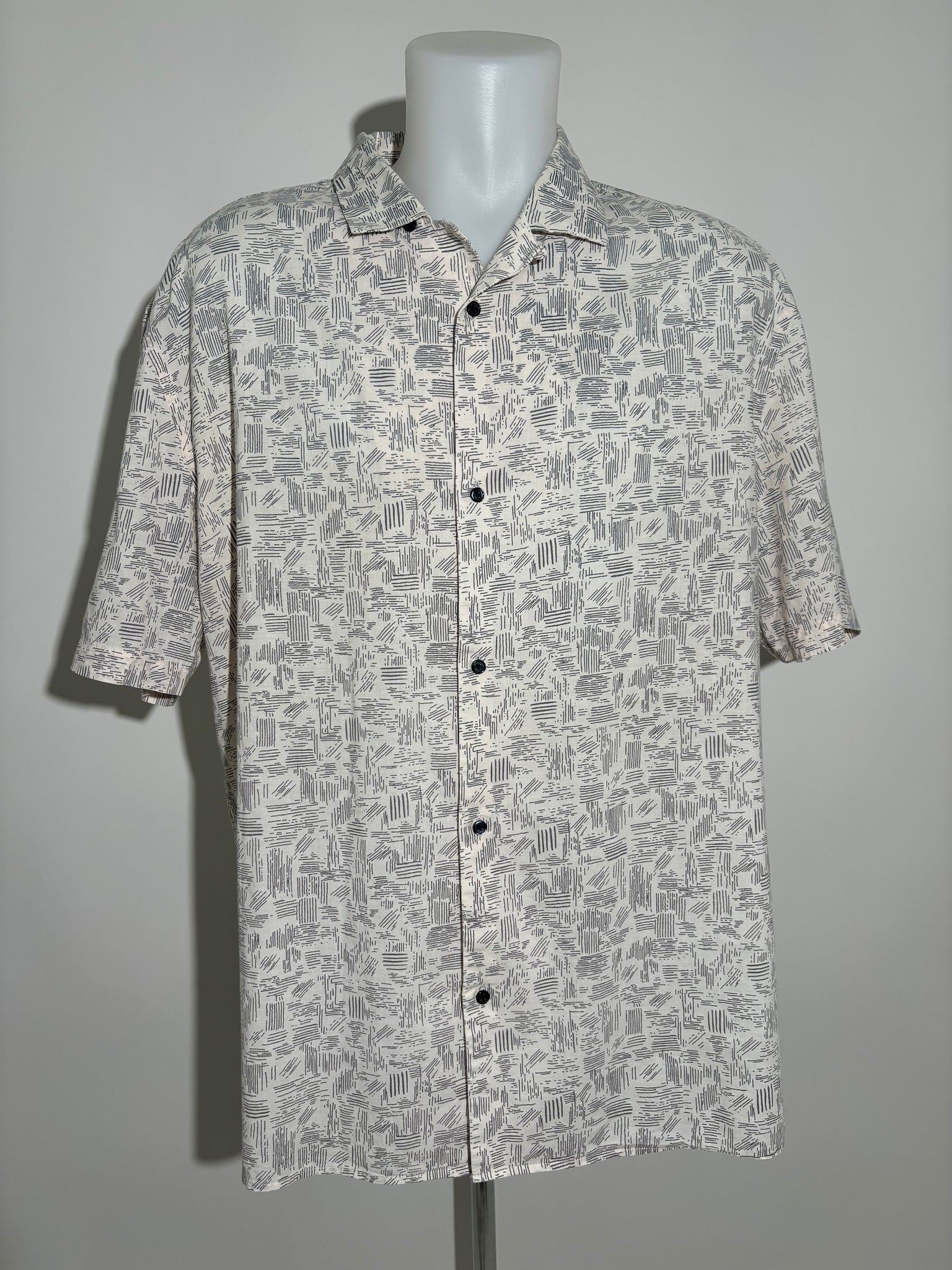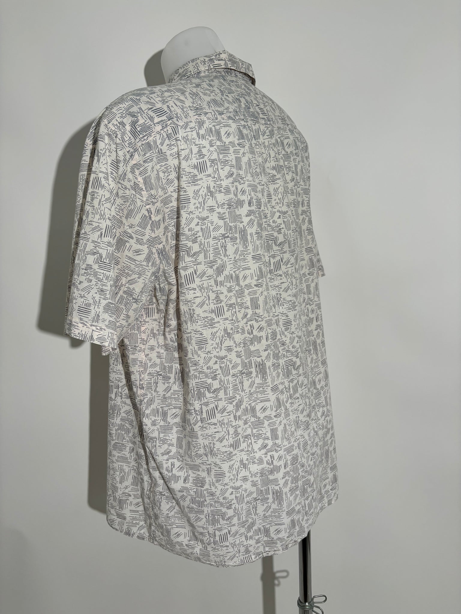 Dodajte dozu apstraktnog stila iz 90-ih vašem ormaru sa ovom mornarsko plavom i belom košuljom. Ova košulja je savršen izbor za svakodnevne i posebne prilike, unoseći retro šarm i eleganciju u vašu garderobu.