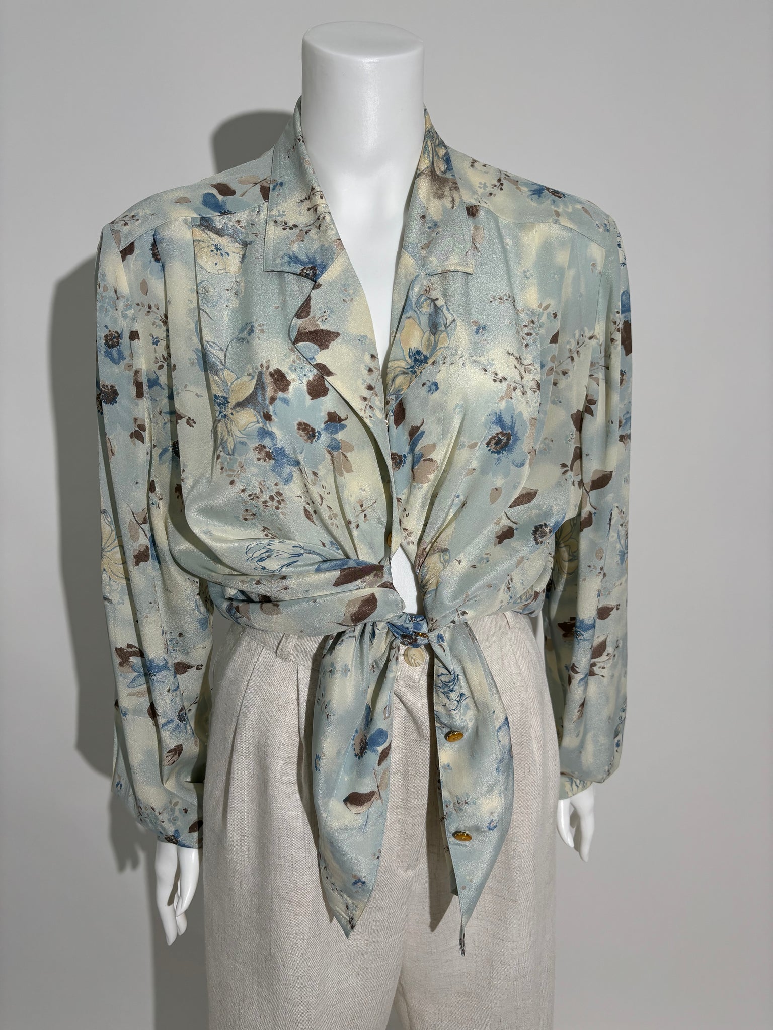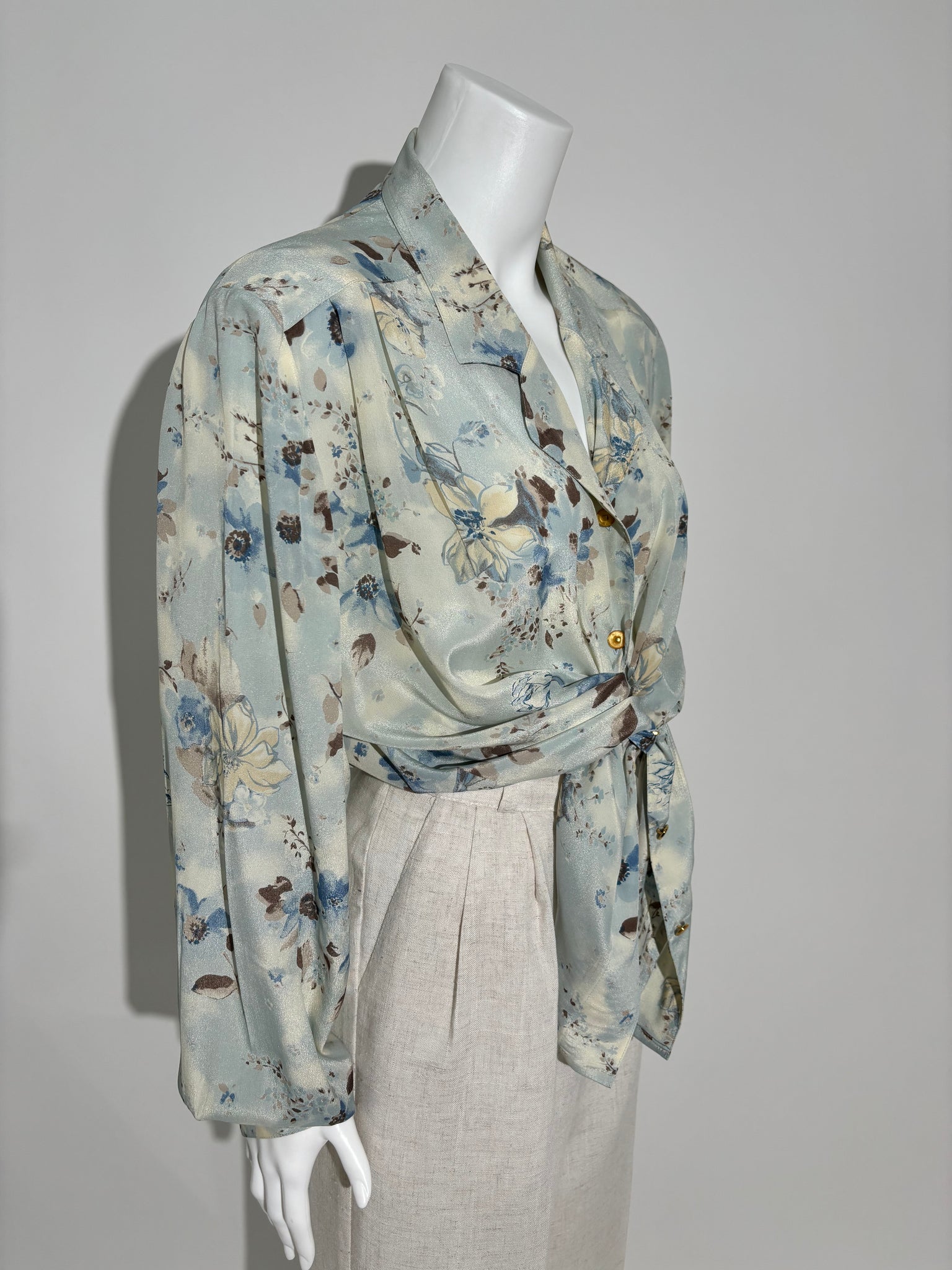 Dodajte dašak neba vašem stilu sa ovom cvetnom košuljom iz 80-ih. Idealan izbor za elegantne i romantične kombinacije.