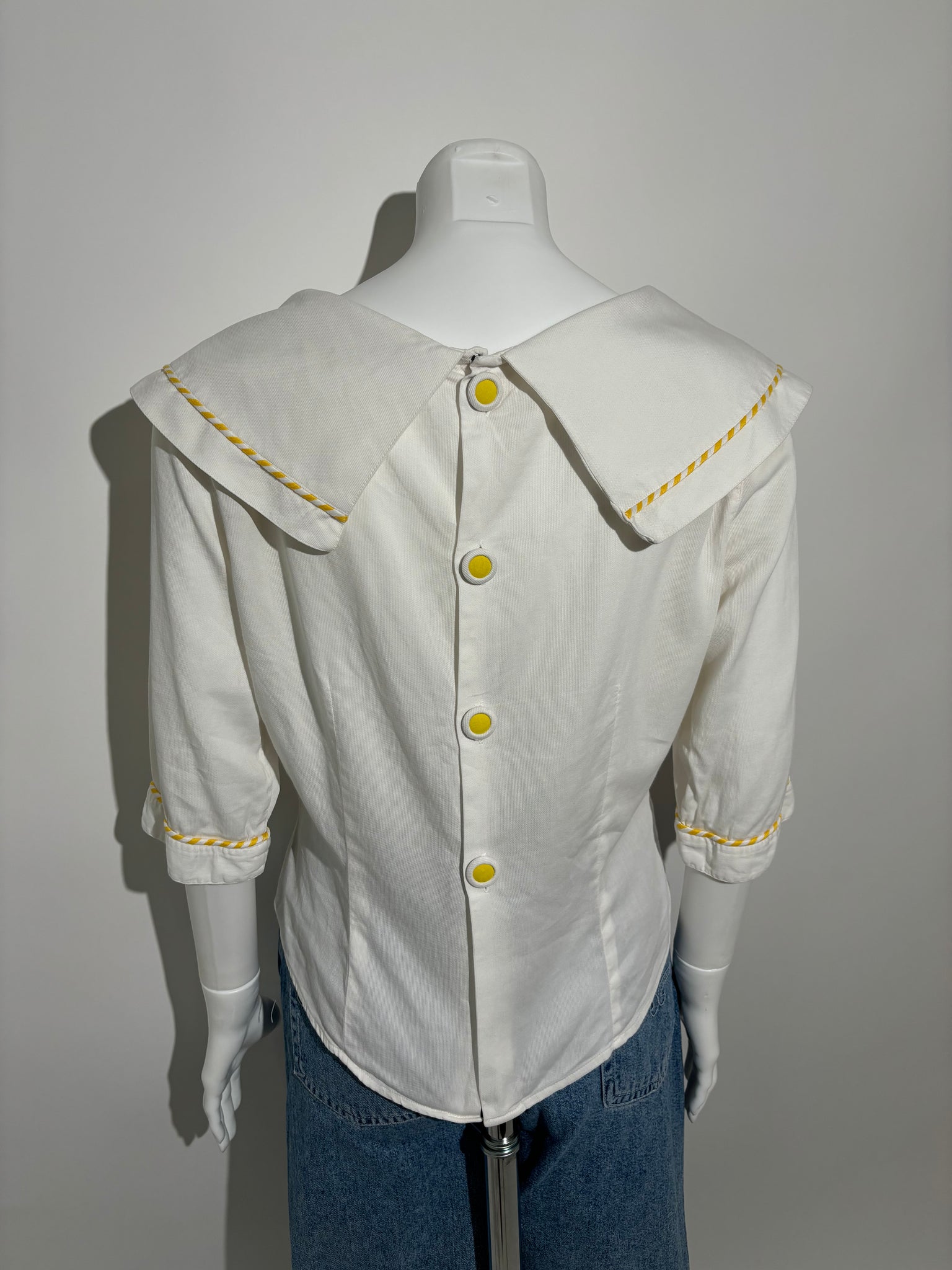 Ova vintage bluza u mornarskom stilu iz 80-ih donosi svetao i osvežavajući izgled. Savršena je za casual prilike i letnje dane.