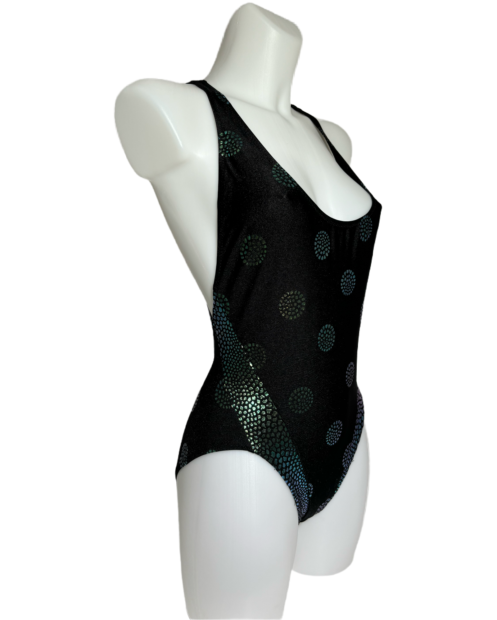 Unesite vibrantnu eleganciju 80-ih u vašu letnju garderobu sa ovim prelepim jednodelnim kupaćim kostimom. Savršen za opuštanje na plaži ili pored bazena, ovaj kupaći kostim kombinuje udobnost i vintage stil.