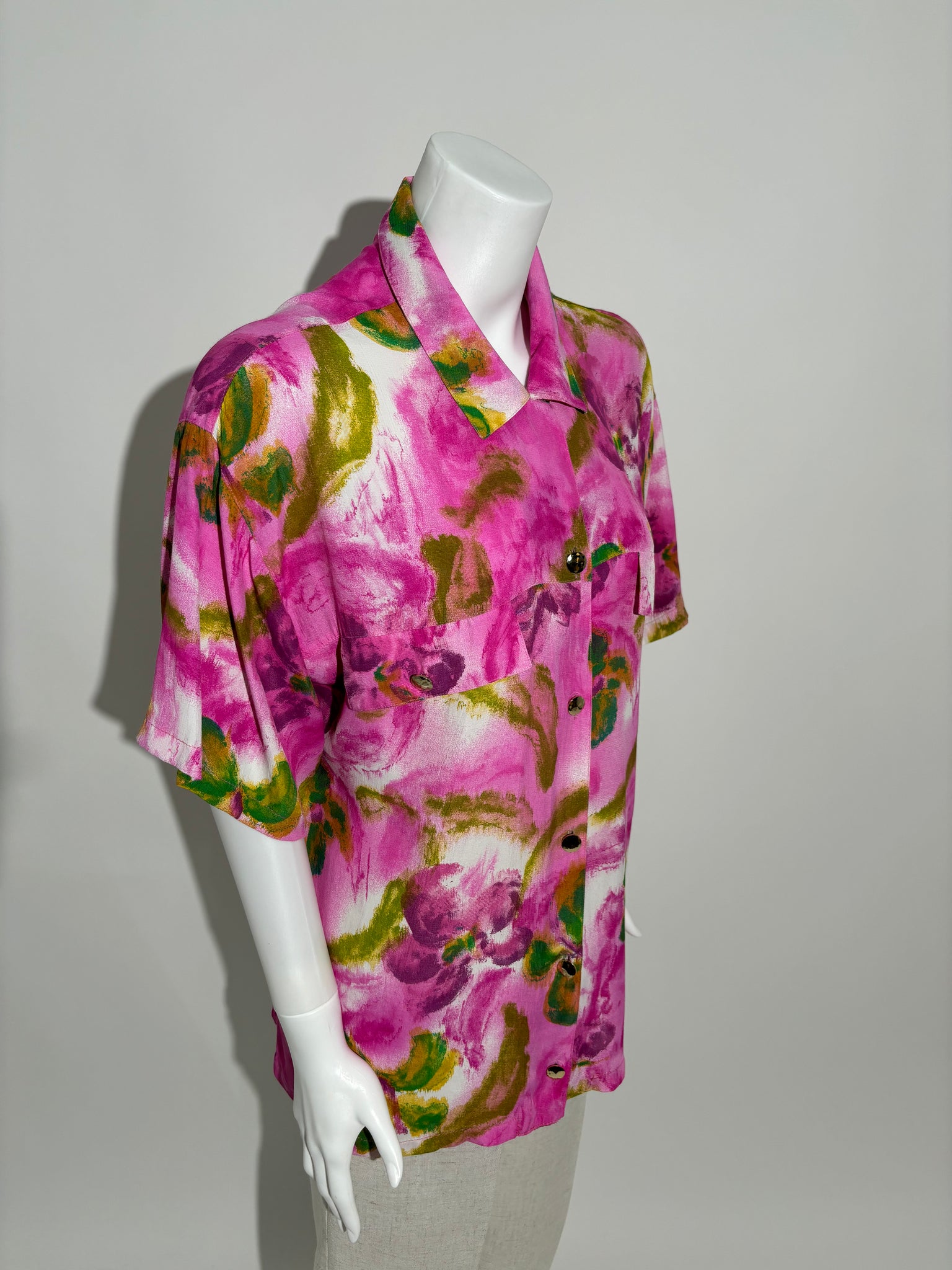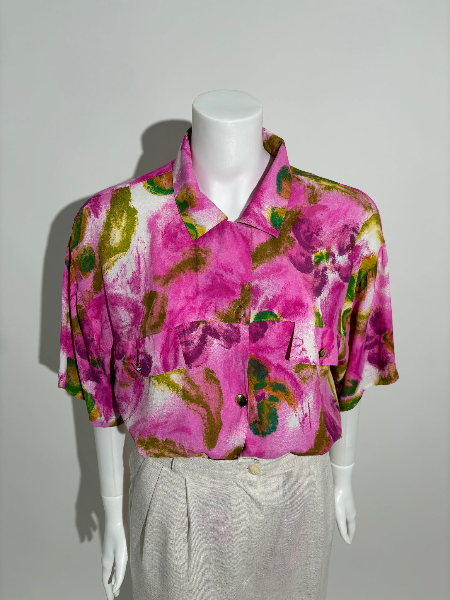 Unesite energiju i boje u svoj stil sa ovom apstraktnom košuljom iz 90-ih. Idealna za ležerne i opuštene prilike.