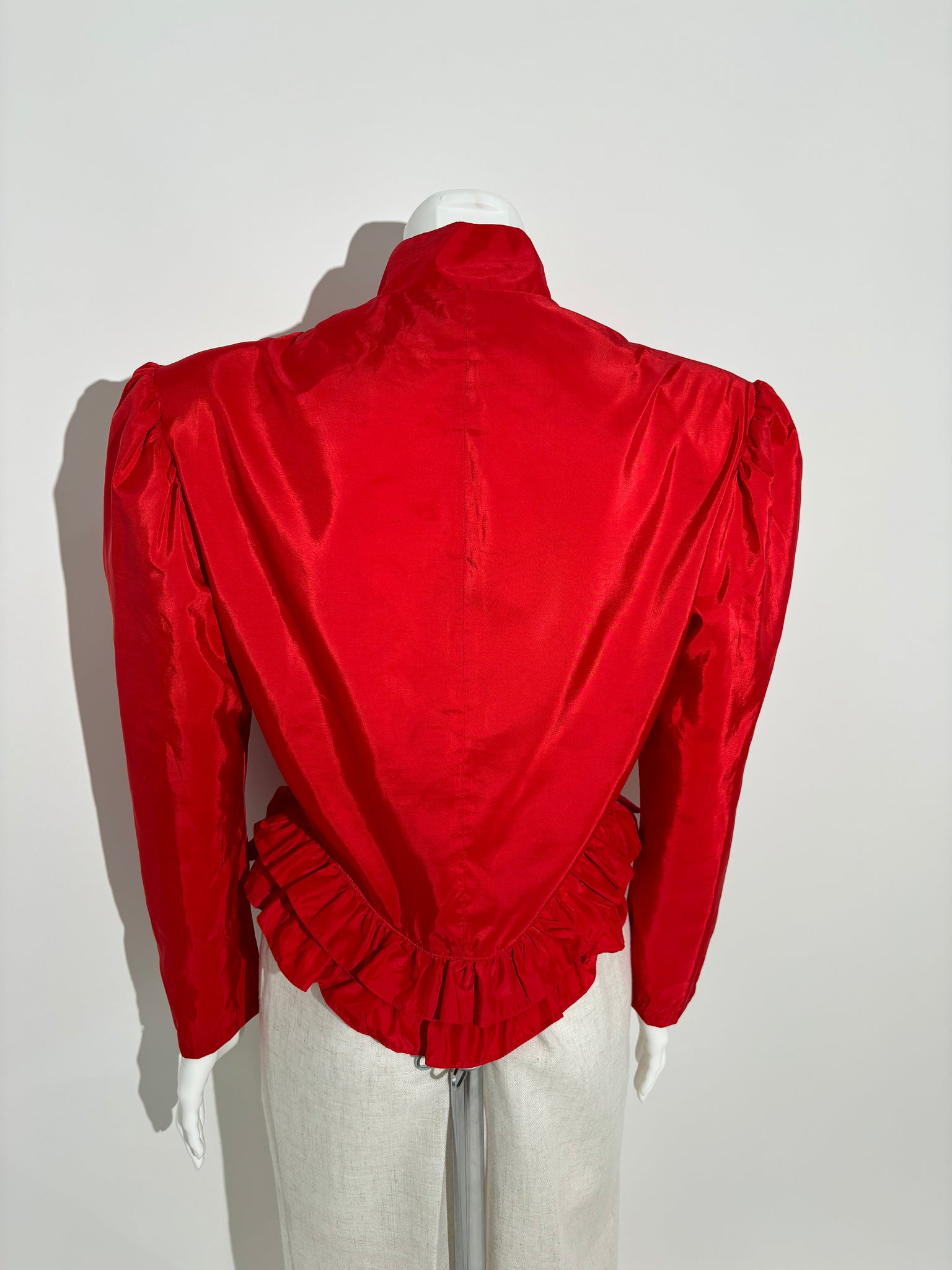 Ova crvena bluzica iz 80-ih inspirisana Viktorijanskim stilom donosi dramatičnost i eleganciju u vaš stil. Idealna za posebne prilike i večernje izlaske.