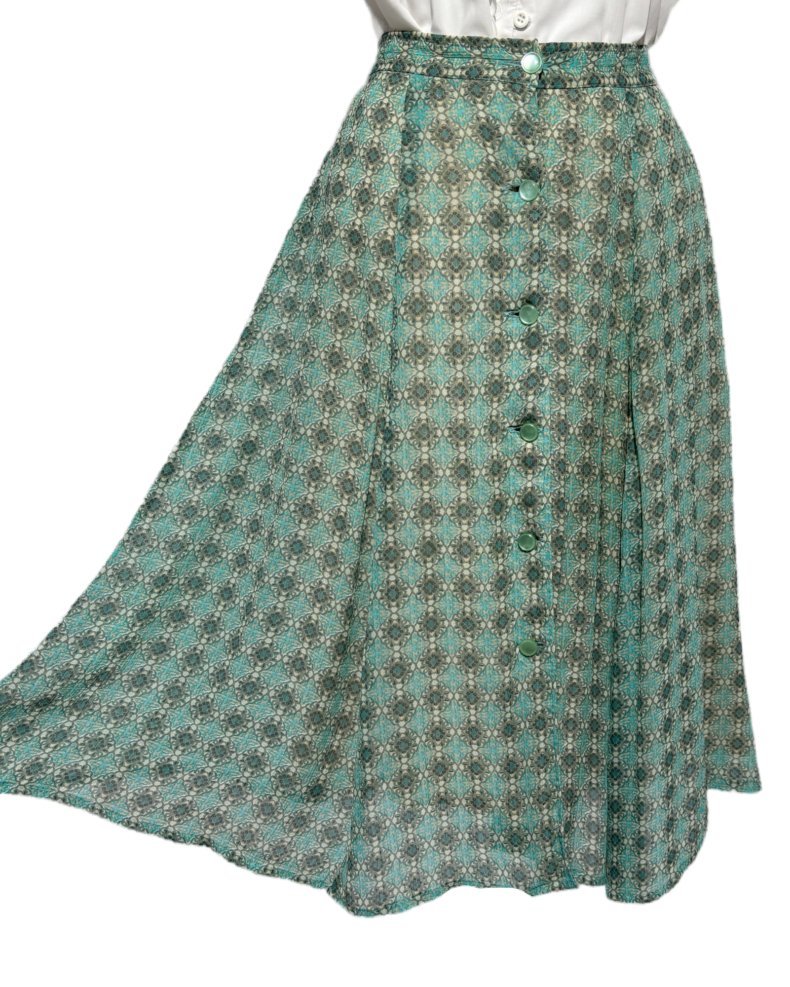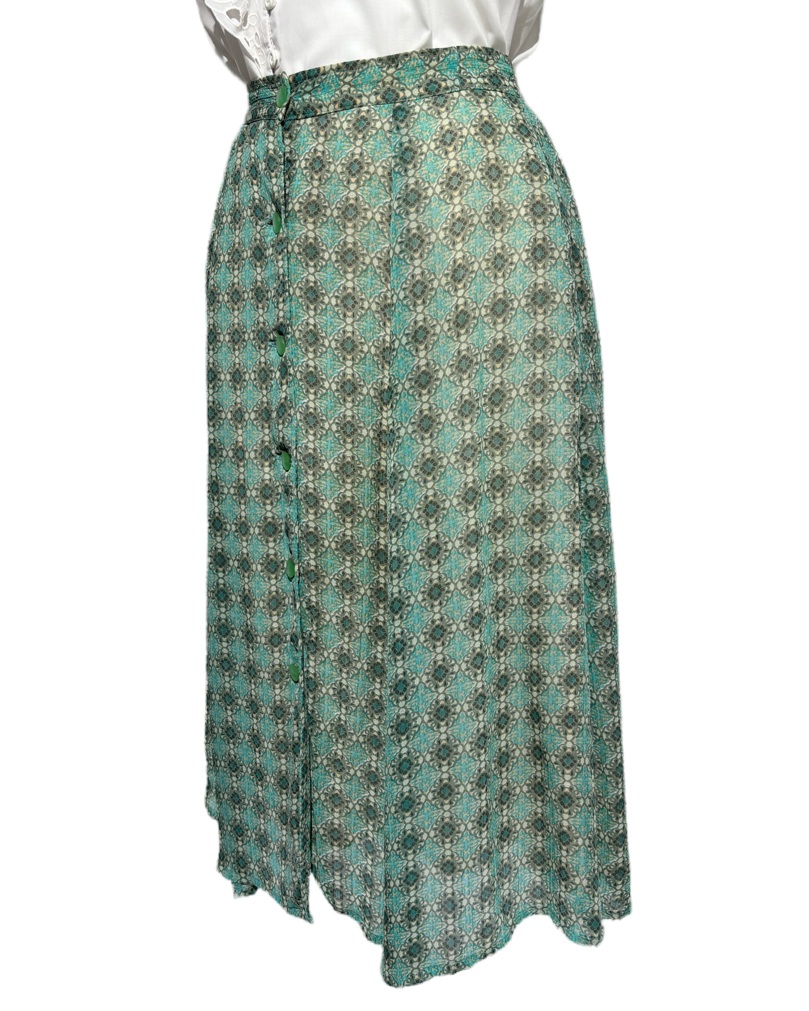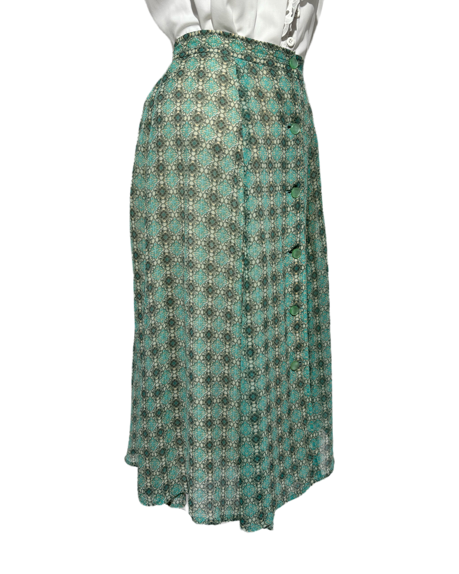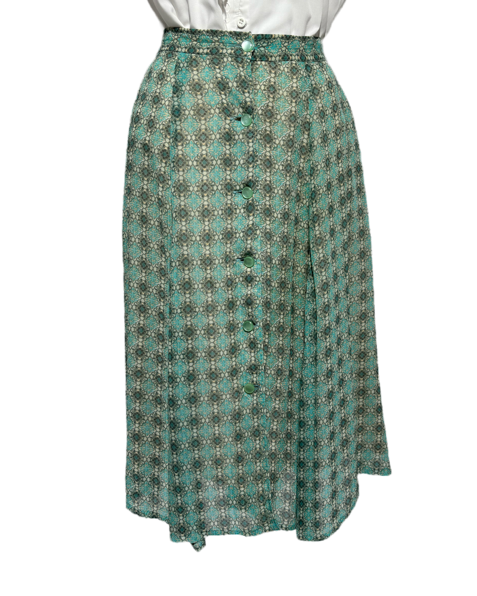Dodajte dašak stila svojoj garderobi sa ovom prelepom Vintage Mosaic 90s suknjom. Savršena za svaku priliku, ova suknja će uneti retro šarm iz 90-ih u vaš stil.